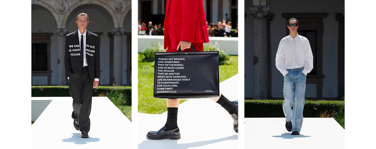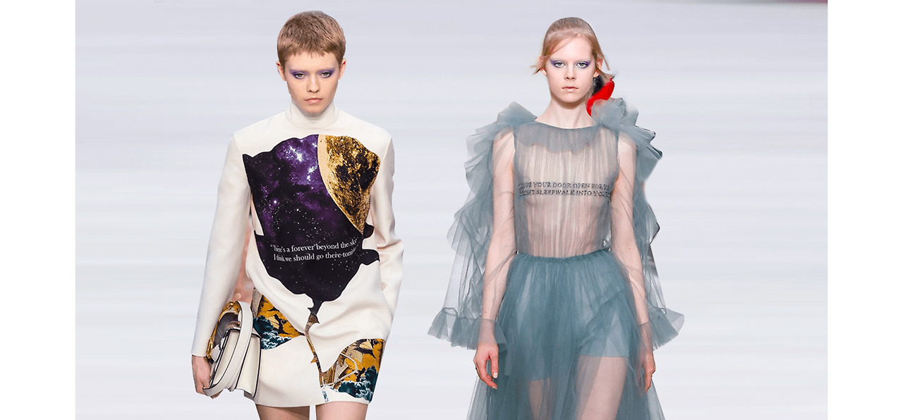 ‘The Narratives’라는 주제로 전개된 컬렉션에서는 <리틀 라이프> 책에 나온 구절을 그대로 프린트한 재킷, 가방, 데님은 말 그대로 직관적으로 책의 메시지를 담고 있다. 오래 간 VALENTINO를 이끌어 온 크리에이티브 디렉터 피엘파올로 피촐리(Pierpaolo Piccioli)가 당시 얼마나 이 책에 빠져있었는지 엿볼 수 있는 대목이다. 그는 “네 명의 남성 캐릭터가 보여주는 관계와 인간성, 연약함과 회복에 대한 부분은 내게 감동과 영감을 주었다”라고 말하기도. 이처럼 줄곧 문학에 대한 사랑을 드러내 온 VALENTINO, 이전 컬렉션에서도 책으로부터의 영감을 찾아볼 수 있다.