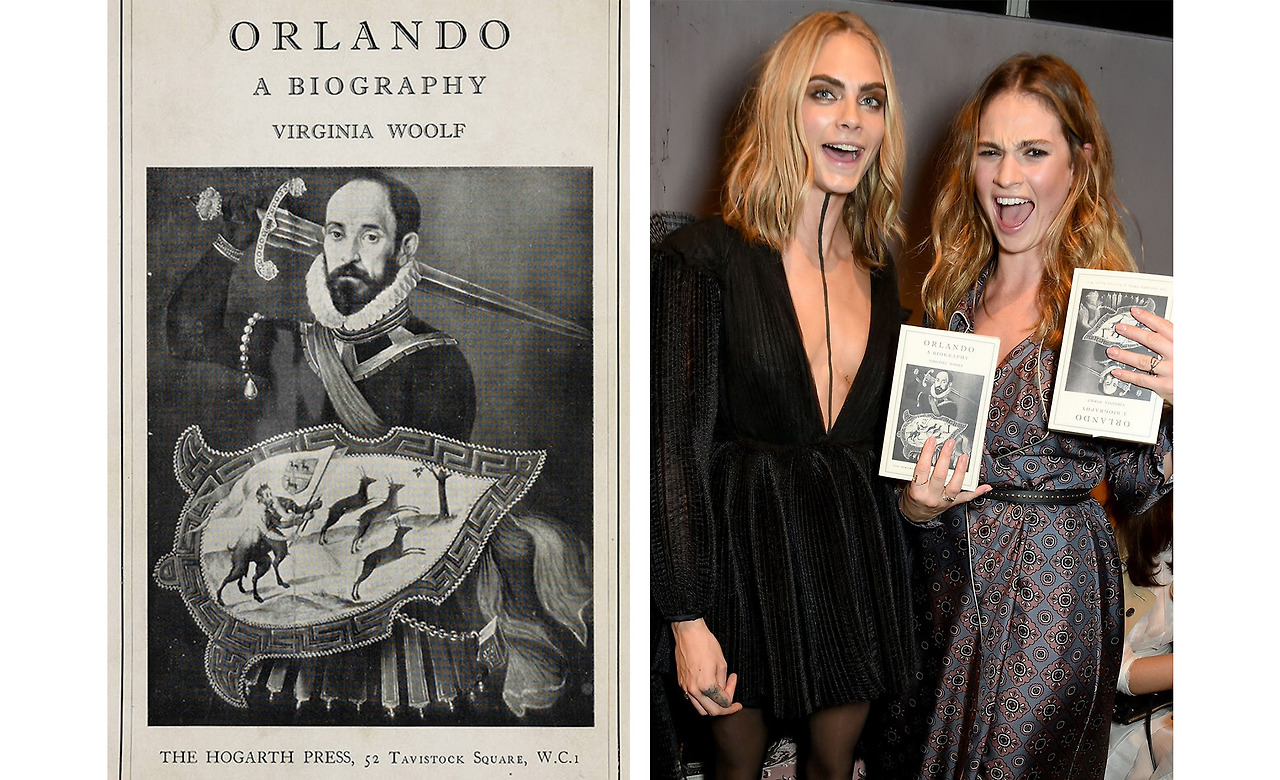 Front cover of Virginia Woolf's Orlando, first edition published by Hogarth Press, 1928. Photo: Wikimedia Commons. / BURBERRY 2016 AW쇼를 위해 재제작한 1928년 버지니아 울프 <올랜도> 첫 커버 이미지.