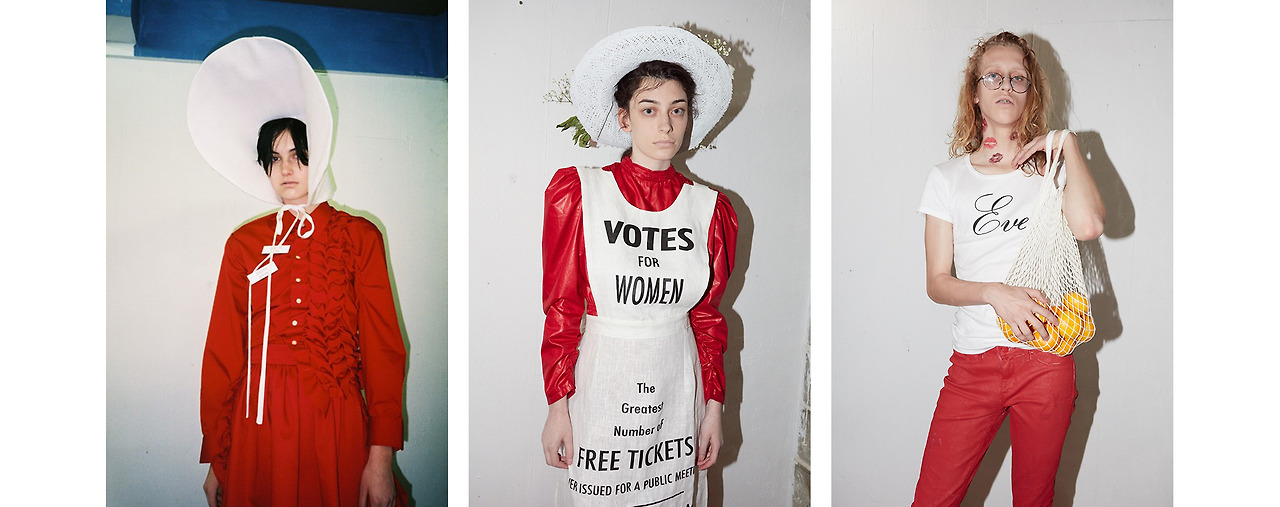 그 흡입력 있는 서사도 그렇지만 강렬한 빨간 예복과 하얀 모자는 한번 보면 잊을 수 없을 정도로 확실한 존재감을 지녔다. 런웨이에서 그들의 의상을 변형시킨 뉴욕 기반의 패션 레이블 VAQUERA.