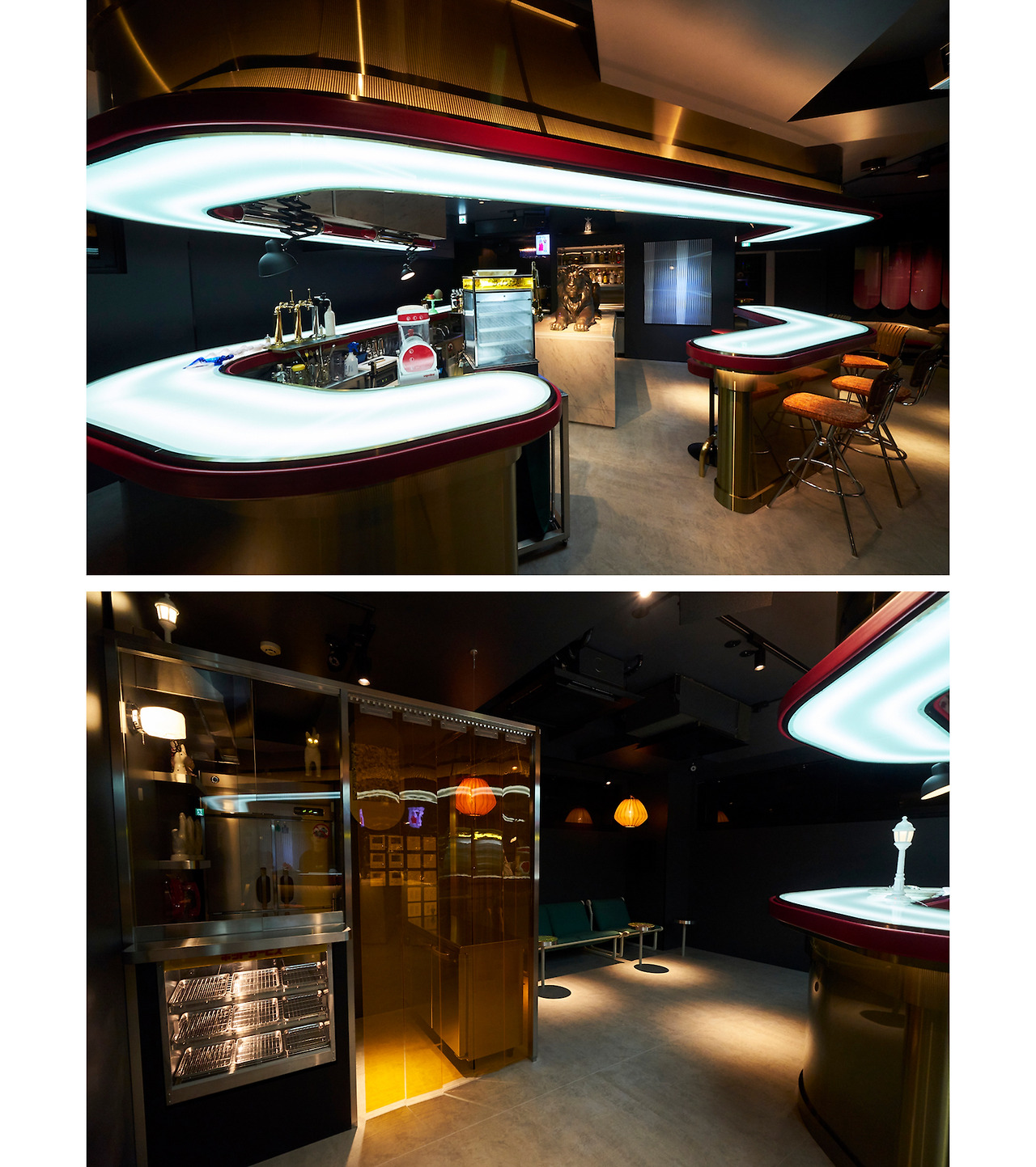 유명 크리에이티브 에이전시가 디렉팅한 뮤직 바. 중앙에 위치한 사자상과 빛을 발하는 테이블이 인테리어 특징으로, 향수를 자아내는 신선한 인테리어 속에서 술, 사운드, 공간 그리고 사람이 만나는 핫한 공간.