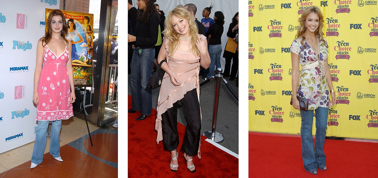 SNS 피드를 내리다 보면 미니 원피스와 레더 재킷 조합을 심심치 않게 볼 수 있다. 2000년대 초반은 조금 다르다. 미니 원피스에 다름 아닌 바지를 매치하는 것. 그게 당시 암묵적인 패션 공식이었을지도 모른다.