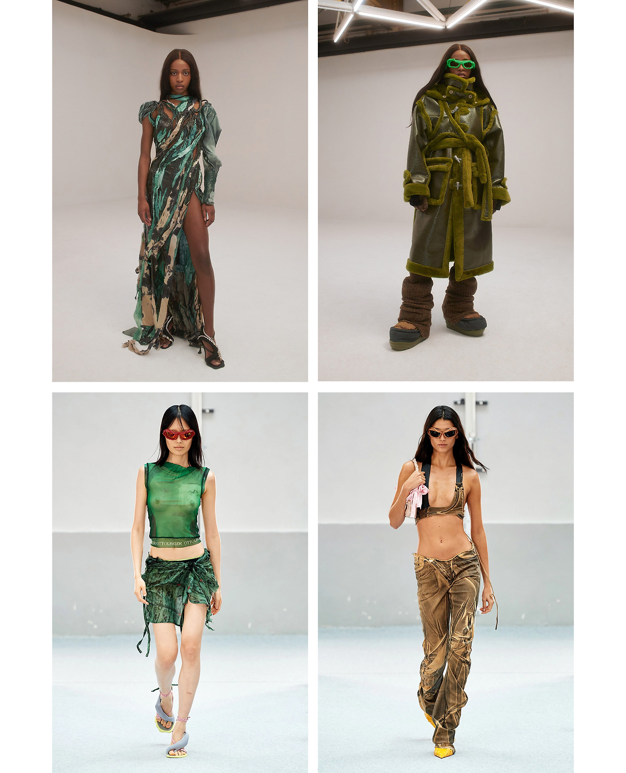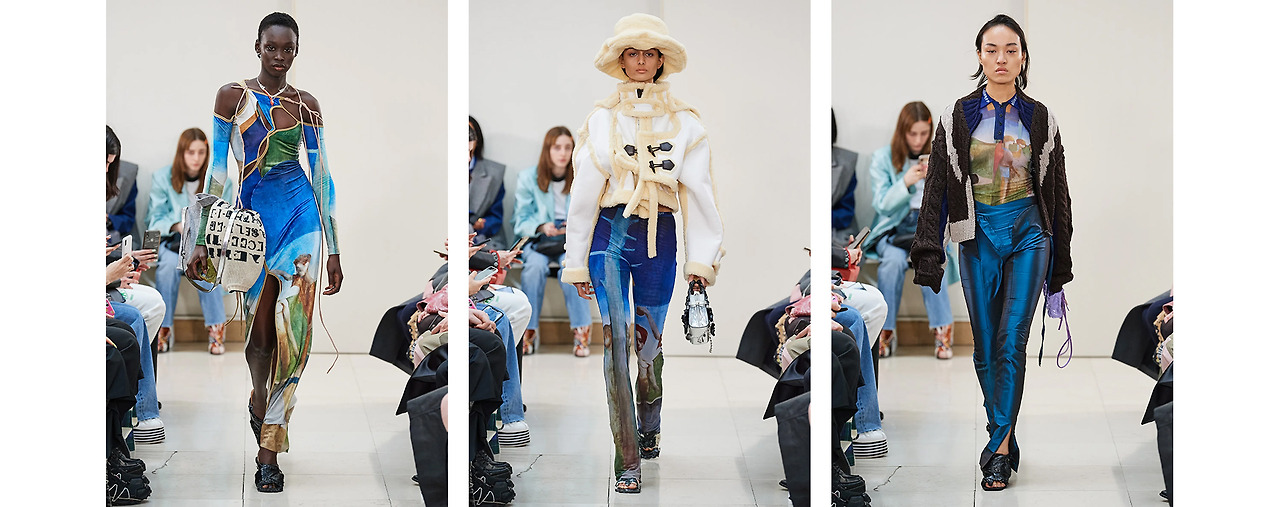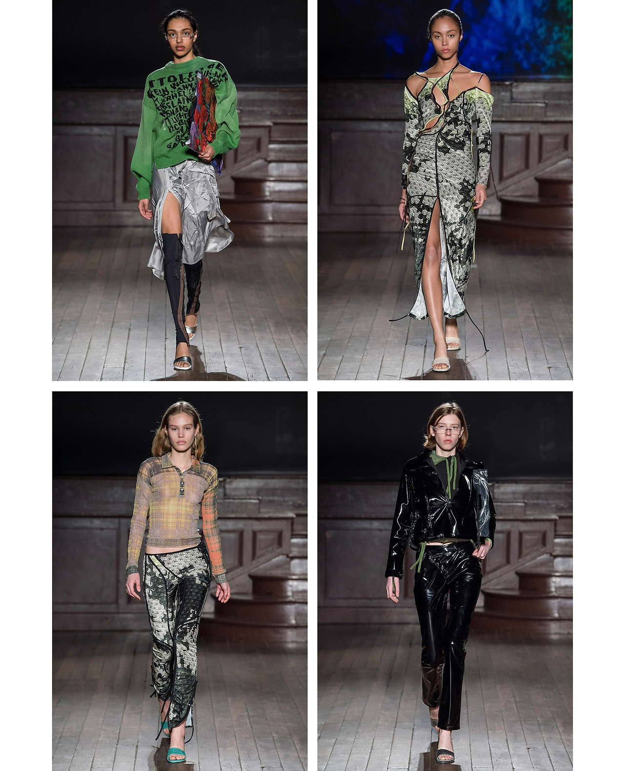 이들은 옷에 아티스트의 프린팅을 담아내 그 작품 세계를 보여주기도 한다. 베트남계 미국인 아티스트 줄리앙 응우옌(Julian Nguyen)의 작품을 통해 일상에 의문을 제기하고 환상을 보여주고자 했던 OTTOLINGER 2020 FW 컬렉션. 특유의 트임과 스트링으로 장식된 원피스와 상의, 바지에 자리한 줄리앙의 작품, 그 안에는 인종, 계급, 그리고 정신 건강으로 대표되는 정체성 정치에 대한 의문이 담겨있다.
