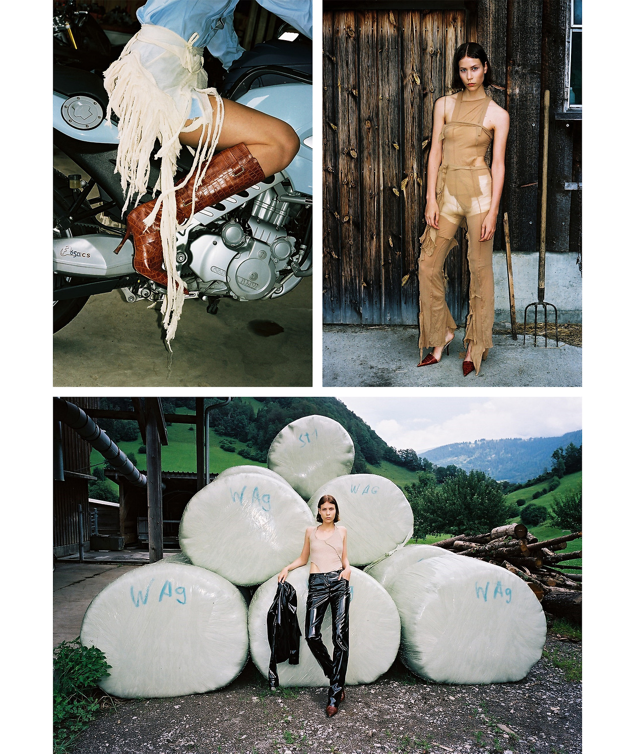 이들이 고향 스위스에서 영감을 찾은 2018 SS 컬렉션. 스위스의 국화인 에델바이스 꽃 소재를 사용하기도 했다. 무엇보다 인상적인 건 브랜드의 로고가 그려진 스위스 가짜 동전들을 제작해 체인에 달아 원피스를 장식한 것. 스위스에서는 아이들이 태어나거나 특별한 날에 동전을 주는 전통이 있다고 한다. 이 듀오도 그렇게 자신들의 컬렉션을 기념하고 싶었던 것 아니었을까.