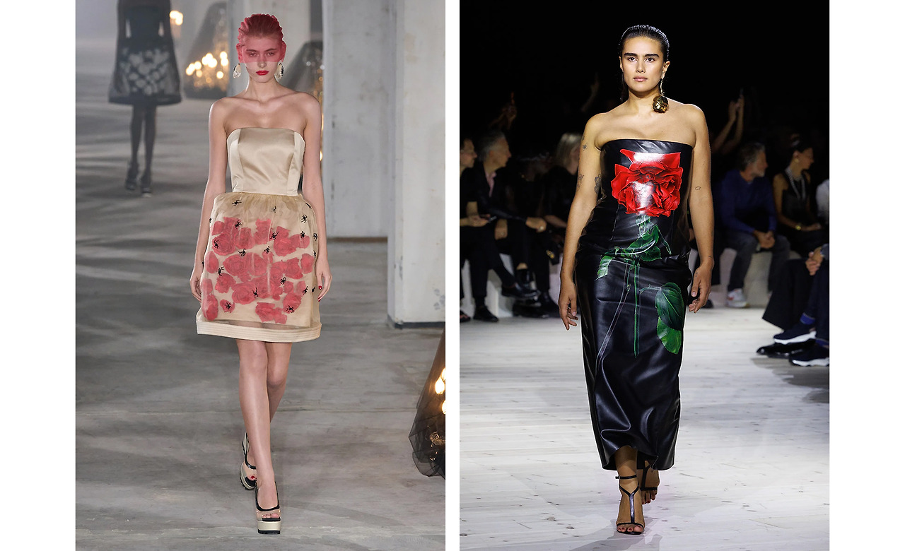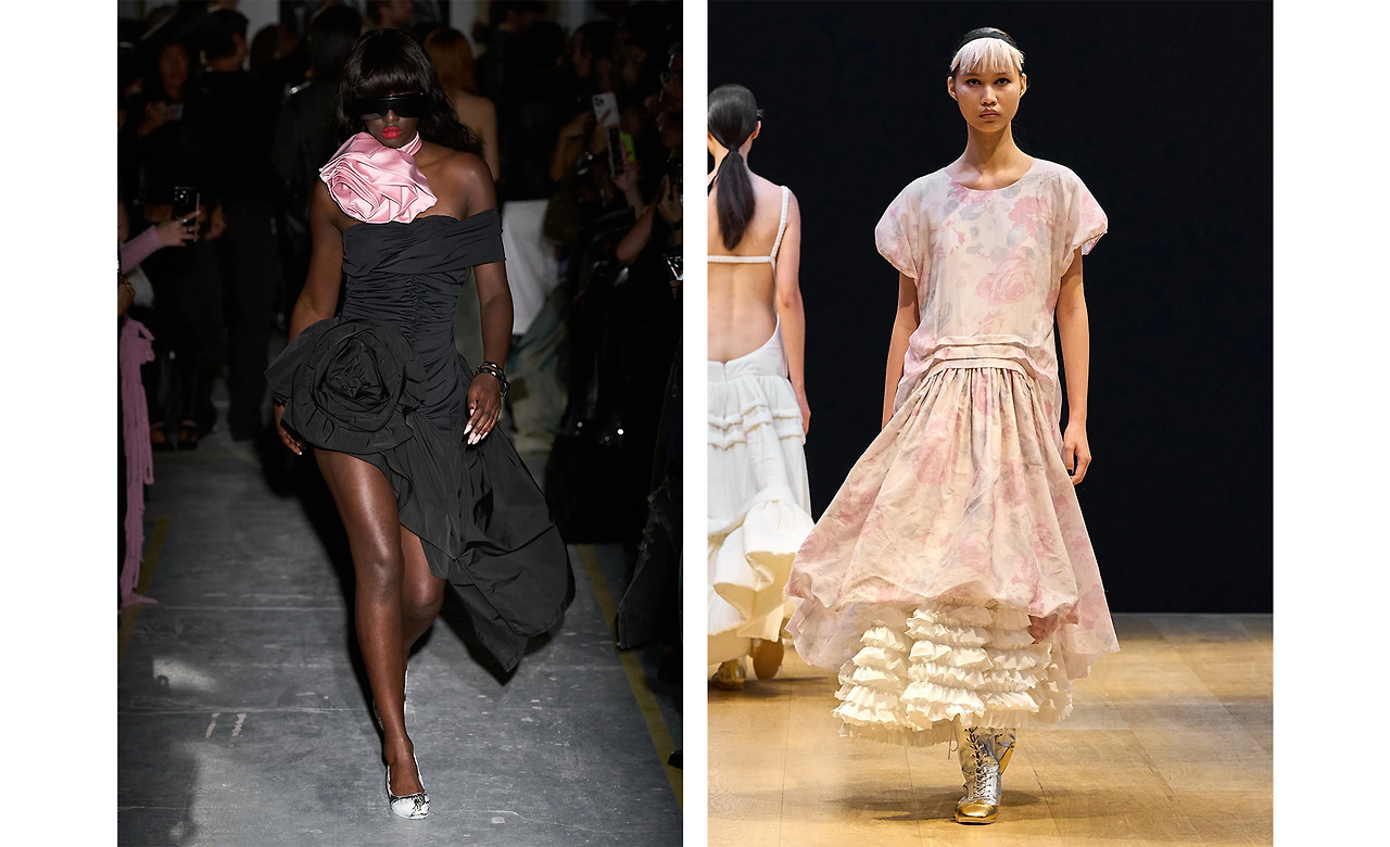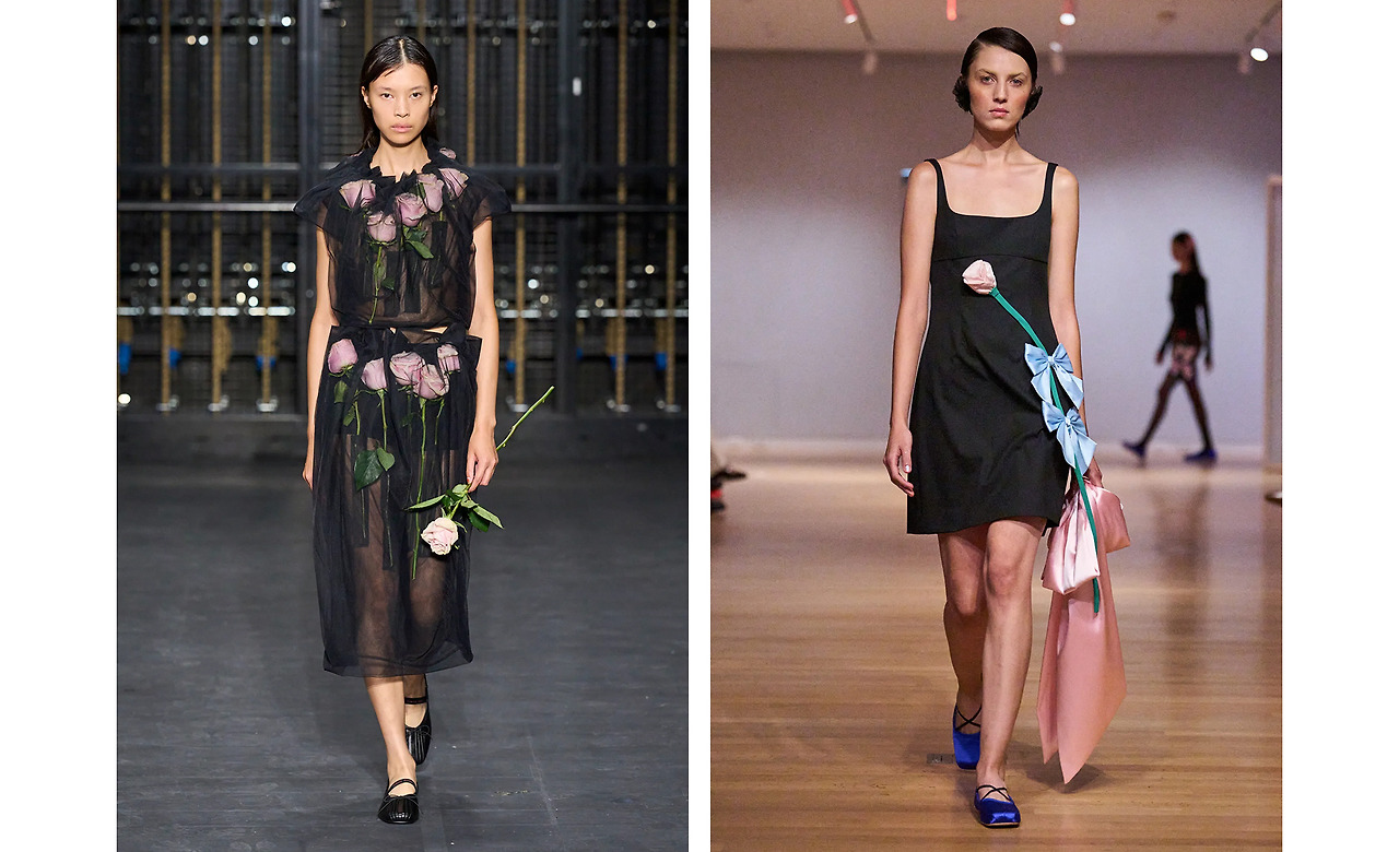 SS 시즌을 아우르는 패턴은 단연 플로럴 프린트. 후보로 오른 수많은 꽃 중에서 가장 많은 브랜드의 선택을 받은 건 열렬한 사랑을 상징하는 장미다. Simone Rocha과 Sandy Liang은 블랙 드레스에 연한 핑크빛 장미를, UNDERCOVER와 Alexander McQueen은 강렬한 붉은빛의 장미를 포인트로 활용함으로써 드라마틱한 무드를 극대화시켰다.