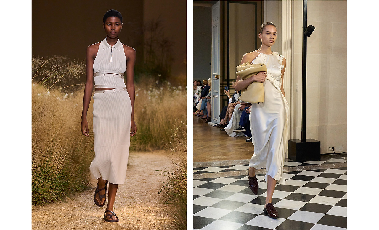 그동안 강렬한 컬러와 장식, 독특한 실루엣으로 무장했던 GUCCI와 MARNI의 런웨이도 이러한 흐름에 맞춰 한결 차분해진 모습이다. 무릎 밑으로 낮게 떨어지는 미디엄과 맥시스커트, 상체를 간결하게 감싸는 티셔츠와 탑까지 신체의 자연스러움을 최대한 부각하면서도 페미닌한 무드를 보존하는 쪽으로 진화했다.