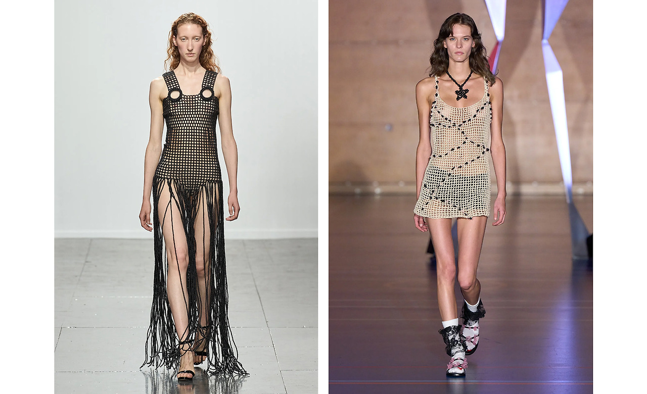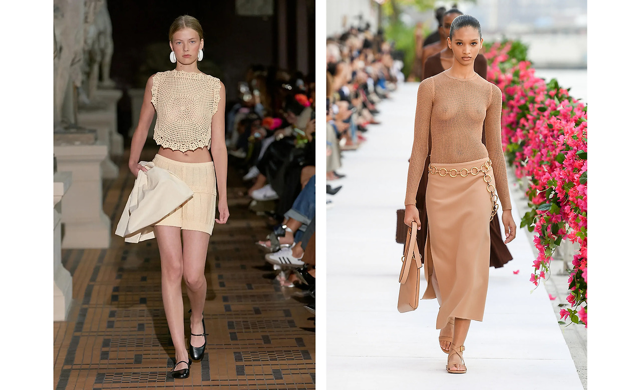 구멍이 송송. 짧아진 가을 덕에 이젠 봄 여름이 니트의 계절로 각광받게 되었다. 이번 시즌엔 쿨링 효과까지 겸비한 통풍성 좋은 오픈워크 니트가 대세일 듯. 단독으로 착용하는 것 외에도 슬립 드레스나 스윔 웨어에 레이어링도 가능하다. 볼드한 액세서리나 금속 재질의 벨트와 함께 매칭한다면 금상첨화.