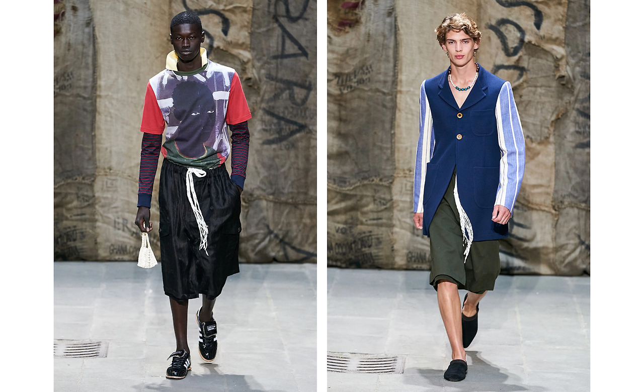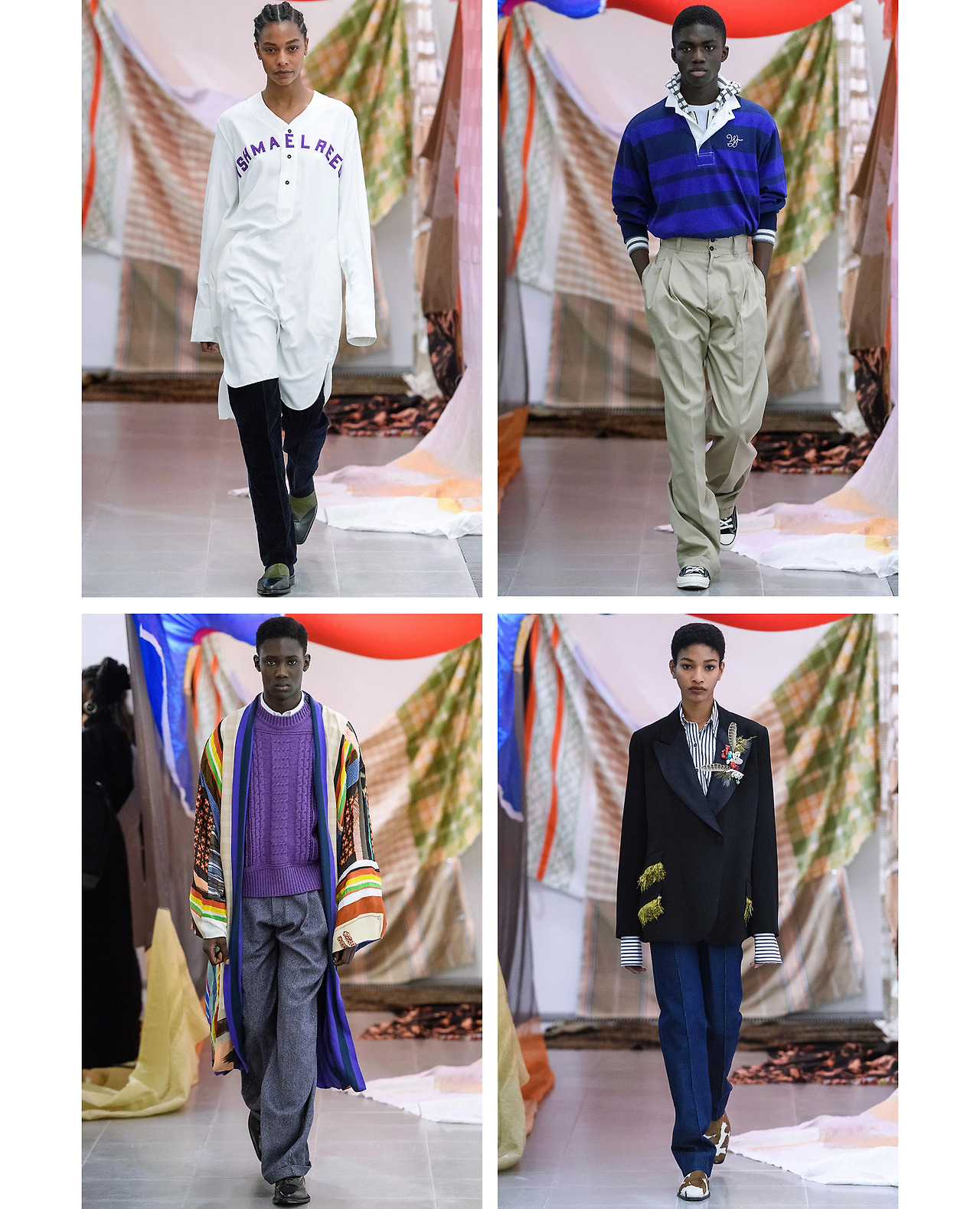 늘 그래왔듯 흑인 남성의 역사와 정체성에 대한 이야기를 중심으로 쇼를 전개한 2019 FW. 첫 오프닝 룩에 새겨진 이름은 흑인 시인 이스마엘 리드(Ishmael Reed)였다. 평소 알려진 책벌레인 웨일스 그레이스 보너는 아프리카 지성 주의에 집중해서 컬렉션을 전개했다. 옷만 봐도 그렇다. 미식축구 셔츠와 아프리카 튜닉을 결합한 상징적인 의상을 내놓았으니. 그뿐이 아니다. 쇼장 곳곳에 장식된 천 또한 여러 시에서 영감받은 것이었다.