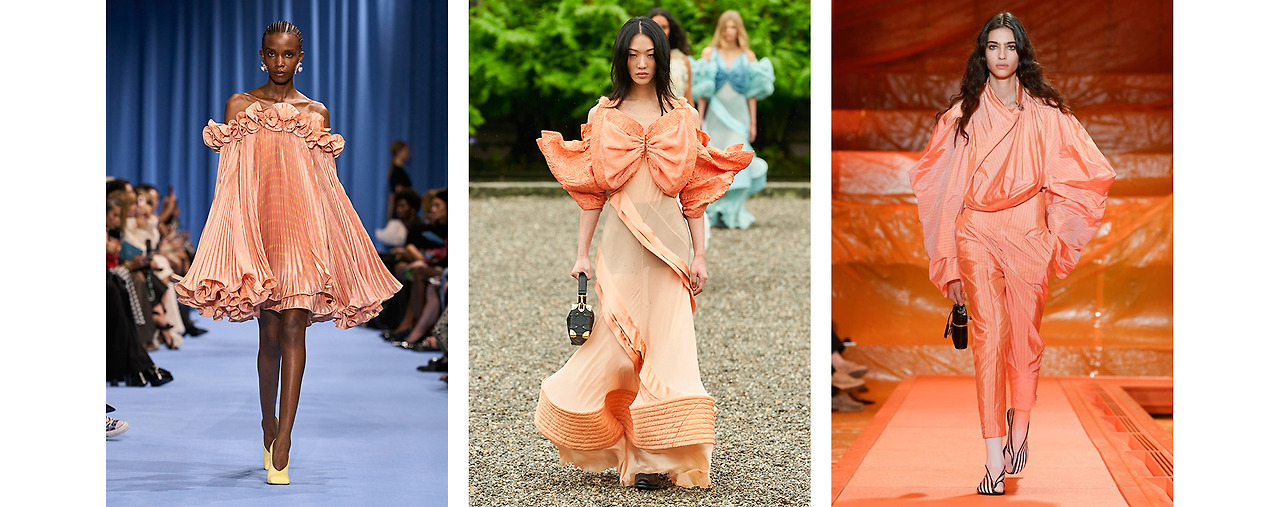 2024 S/S에서도 다채롭게 등장한 피치 퍼즈. 코트, 셋업 슈트, 드레스, 원피스, 블라우스, 재킷을 선보인 LOUIS VUITTON, JIL SANDER, GUCCI 등의 런웨이 컬렉션에서 이 색을 활용한 라인을 만나볼 수 있었으니.