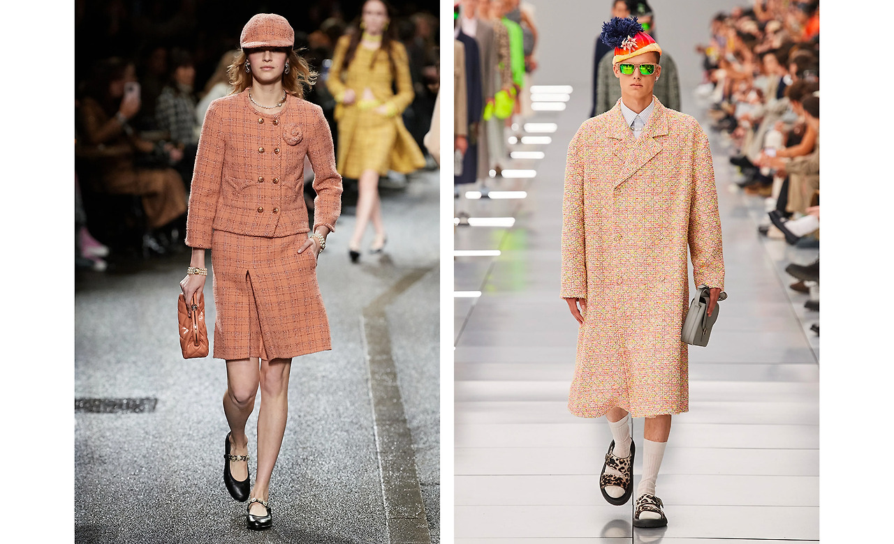 피치 퍼즈 색상을 러블리하게만 즐기고 싶지 않다면 소재에 집중하자. CHANEL의 클래식한 트위드가 어김없이 여기 있으니.