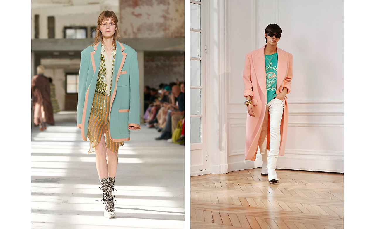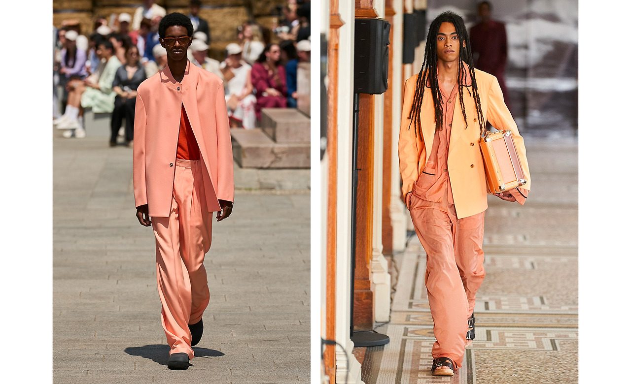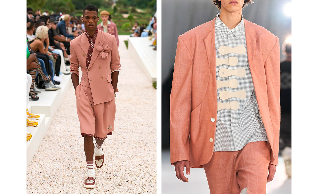 여기서 다가 아니다. 격식 있는 자리에 화사하게 코디할 수 있는 피치 퍼즈 셋업도 주목하라. 풀 셋업이 부담스럽다면 채도를 낮춘 셋업에 화이트 셔츠나 더 밝은 채도나 패턴의 이너로 포인트를 주는 것도 방법.