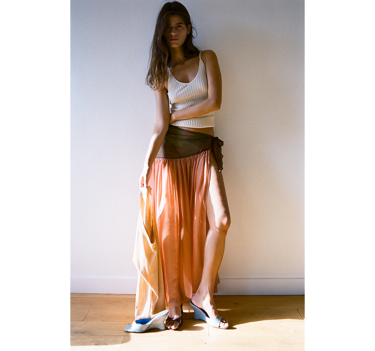 Maryam Nassir Zadeh처럼 피치 퍼즈 계열의 스커트를 착용하면 크게 톤에 구애받지 않고 스타일링을 즐길 수 있다. 따스한 봄, 여름에 화이트 탑과 함께 매치하면 이만한 조합이 없을 것.