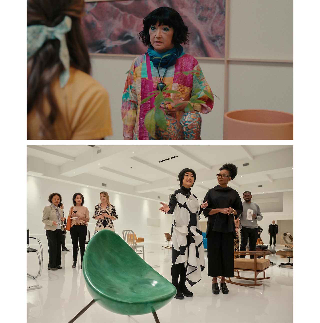극 중 죠셉 리의 어머니이자 유명한 아티스트 역할을 맡은 후미 역의 패티 야스타케(Patti Yasutake)의 스타일도 빼놓을 수 없다. 블랙 도트 Junya Watanabe 드레스, 80년대 초반의 Issey Miyake, 빈티지 Yohji Yamamoto 그리고 Comme des Garçons. 듣기만 해도 아방가르드한 옷장은 그녀의 성격과 닮았다. 예술 작품처럼 옷을 입는 후미라는 캐릭터는 나이를 먹어도 자유로운 자기 표현 욕구는 절대 식지 않음을 보여 준다. 특히 대출을 부탁하러 가는 다소 위축될 법한 순간조차도 더욱 담대한 옷을 입은 모습이 인상적이다.