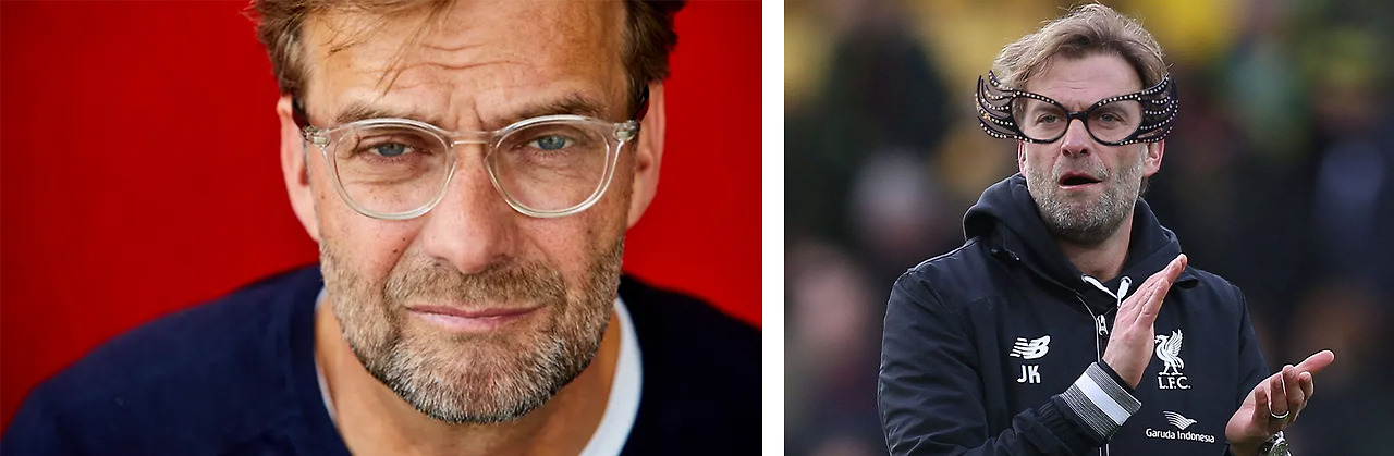 추가로 포인트가 될 수 있는 안경도 있다면 더할 나위 없겠다. 안경 쉐입 하나만으로도 인상이 확 바뀌니까. 평소 뿔테안경을 즐겨 쓰는 클로프 감독.