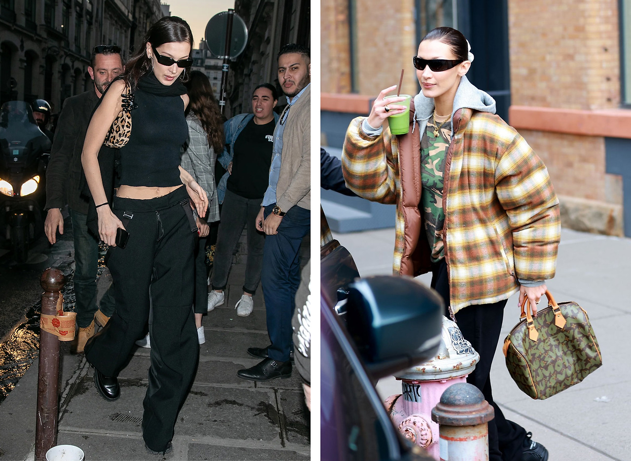 벨라가 어떤 빈티지 백을 메고 나왔는지 보는 것도 쏠쏠한 재미다. 올 블랙 착장에 하나의 포인트인 PRADA의 레오파드 백과 카무플라주 패턴의 탑에 함께 든 무라카미 타카시(Murakami Takashi)의 LOUIS VUITTON 그래픽 백은 그녀의 센스가 드러나는 탁월한 깔맞춤 패션.