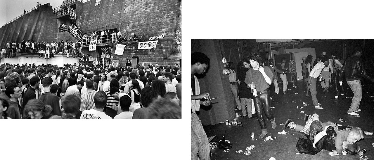 그리하여 클러버들은 정부의 눈을 피해 넓은 야외 공간이나 들판, 빈 건물로 장소를 옮기게 된다. 이때 ‘대규모 댄스파티 문화’를 설명하기 위해 ‘레이브(Rave)’라는 용어가 음악 잡지인 ‘Mix magazine’에 의해 처음 소개되었는데, 이 용어는 ‘황홀한 정신 상태’를 묘사하기 위해 사용되었던 ‘Raving Mad’에서 유래되었다.