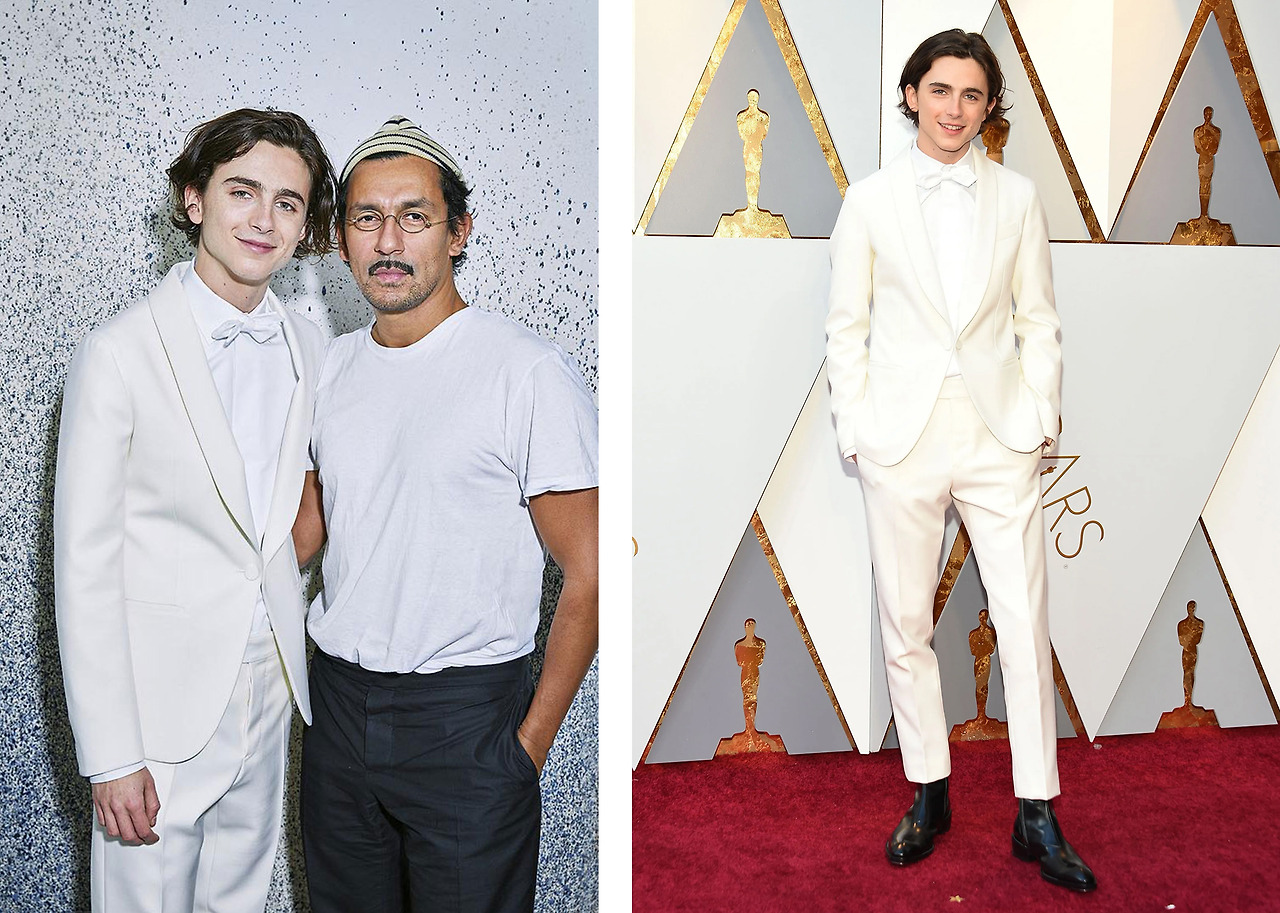 티모시 샬라메 베를린 국제 영화제 포토콜을 위해 하이더 아커만은 보라색 스웨이드 재킷을 준비했다. 그는 당시 LVMH 그룹이 보유하고 있는 Berluti 크리에이티브 디렉터로 몸담고 있었다. 약 1년 후 파리에서 열린 Berluti 남성복 쇼의 백스테이지에서 하이더 아커만을 다시 재회했고, 얼마 지나지 않아 티모시는 아카데미 시상식에 하이더 아커만이 디자인한 화이트 턱시도를 입고 등장했다.