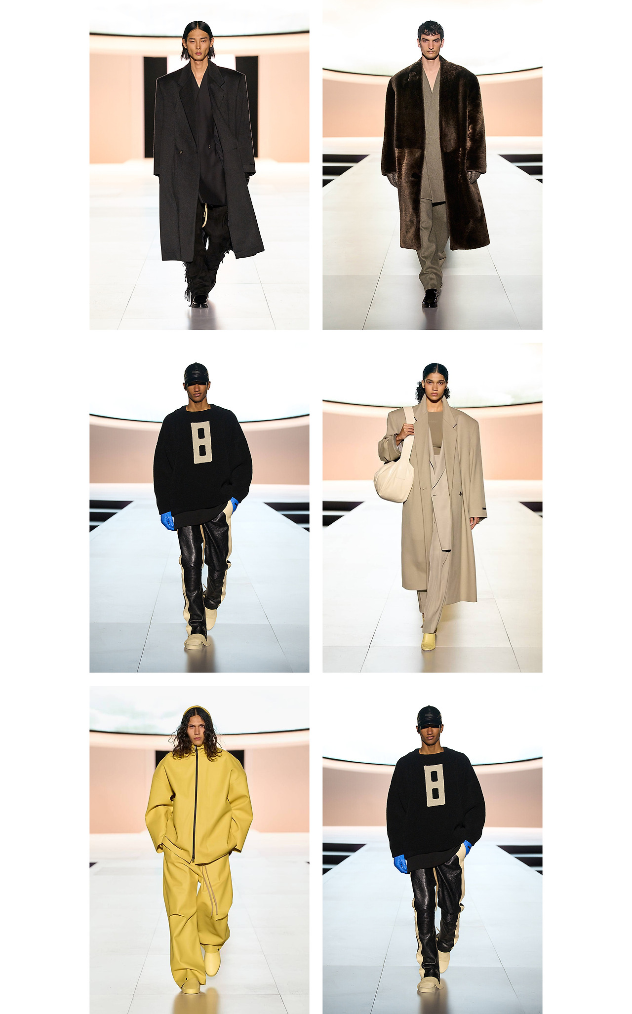 의상 역시도 나무랄 데가 없었다. 소재의 차별화, 고급스러운 테일러링 속에 깃든 절제된 화려함, 쇼의 흐름에 따라 자연스레 변화하는 컬러 팔레트는 FEAR OF GOD만의 엘레강스가 무엇인지 제대로 보여주었다.