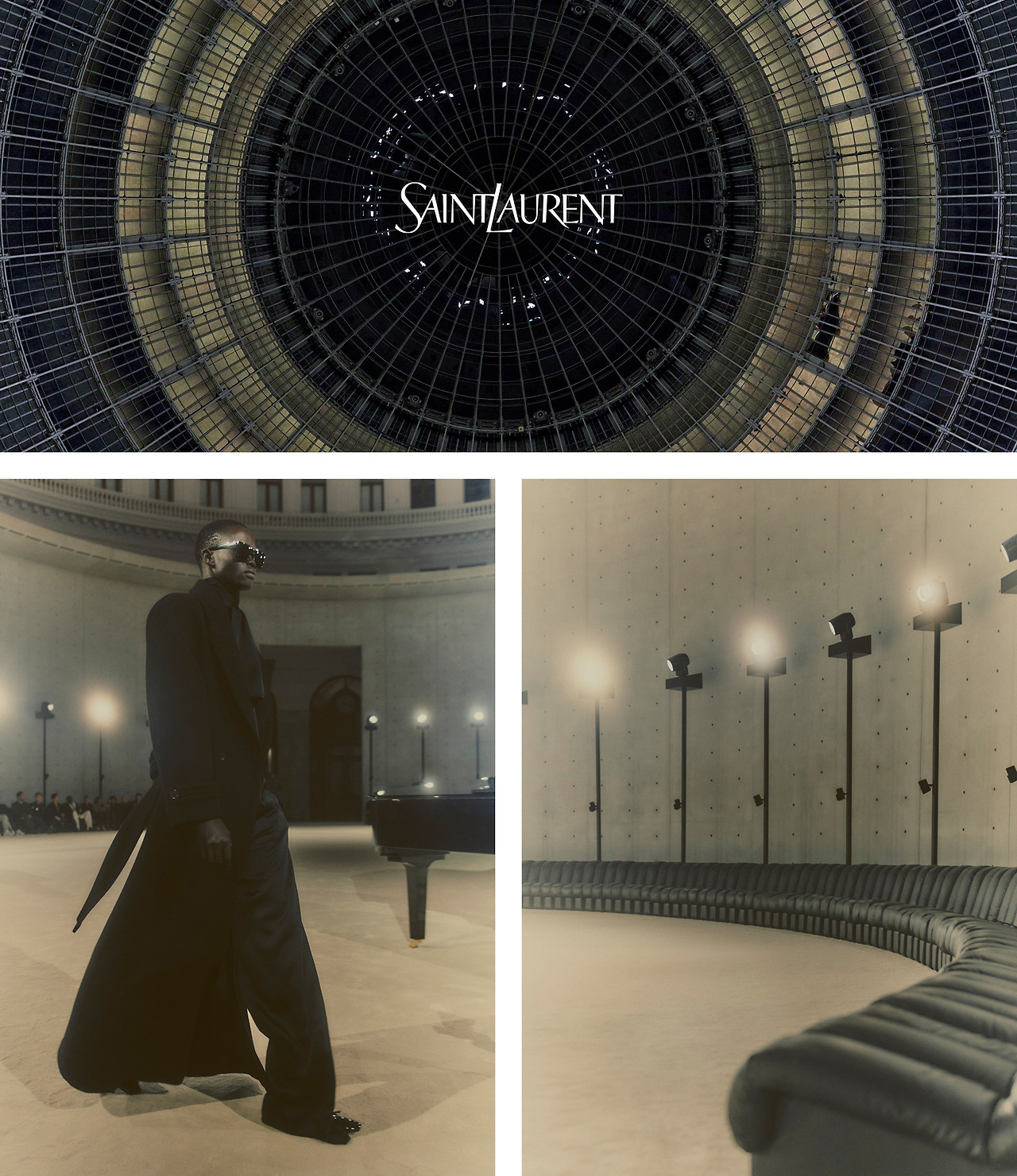 지난 1월, 파리에 위치한 미술관 부르스 드 코메르스(Bourse de Commerce) 돔 아래, 원형 홀에서는 SAINT LAURENT 2023 FW 컬렉션이 한창이었다. 크리에이티브 디렉터 안토니 바카렐로는 2023 SS 맨즈 컬렉션을 모로코의 광활한 아가파이 사막에서 그야말로 영화에서 나올 법한 비주얼을 담아내 많은 이들의 이목을 집중시킨 바 있다. 그렇게 후속 컬렉션에 대한 궁금증은 자연스레 기대감으로 번졌고 안토니 바카렐로는 파리의 부르스 드 코메르스 미술관을 대답으로 제시했다.
