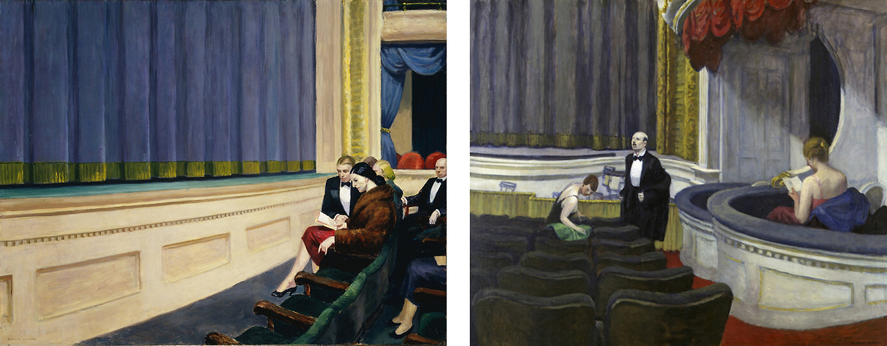 호퍼와 그의 아내 조세핀도 빠지지 않았다. 호퍼는 원체 검소한 사람이었다고 하지만, 그가 누렸던 유일한 사치는 다름 아닌 극장을 일주일에 한 번 이상씩 방문했던 것이라고 한다. 호퍼는 영감을 위해 극장을 자주 찾았기에 극장은 호퍼에게 남다른 의미가 있을 것이다. 그의 초기작부터 사망하기 3년 전까지 그의 작품 세계 전반에 극장을 향한 애정이 돋보인다.