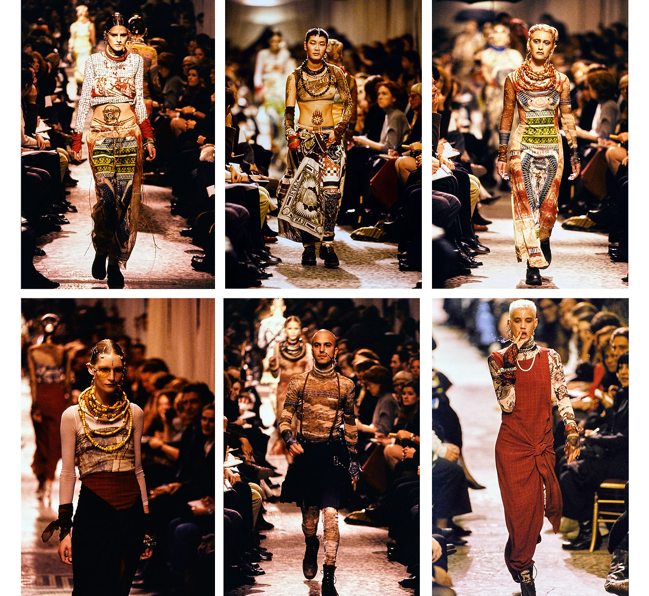 최근 Y/Project와의 협업을 통해 다시 부흥기를 맞이한 장 폴 고티에(Jean Paul Gaultier). 그는 제자이자 인턴이었던 Maison Martin Margiela의 1989 데뷔 쇼 트롱프뢰유 티셔츠를 기념해 'Les Tatouages(1994)’ 컬렉션을 세상에 내놓았다.