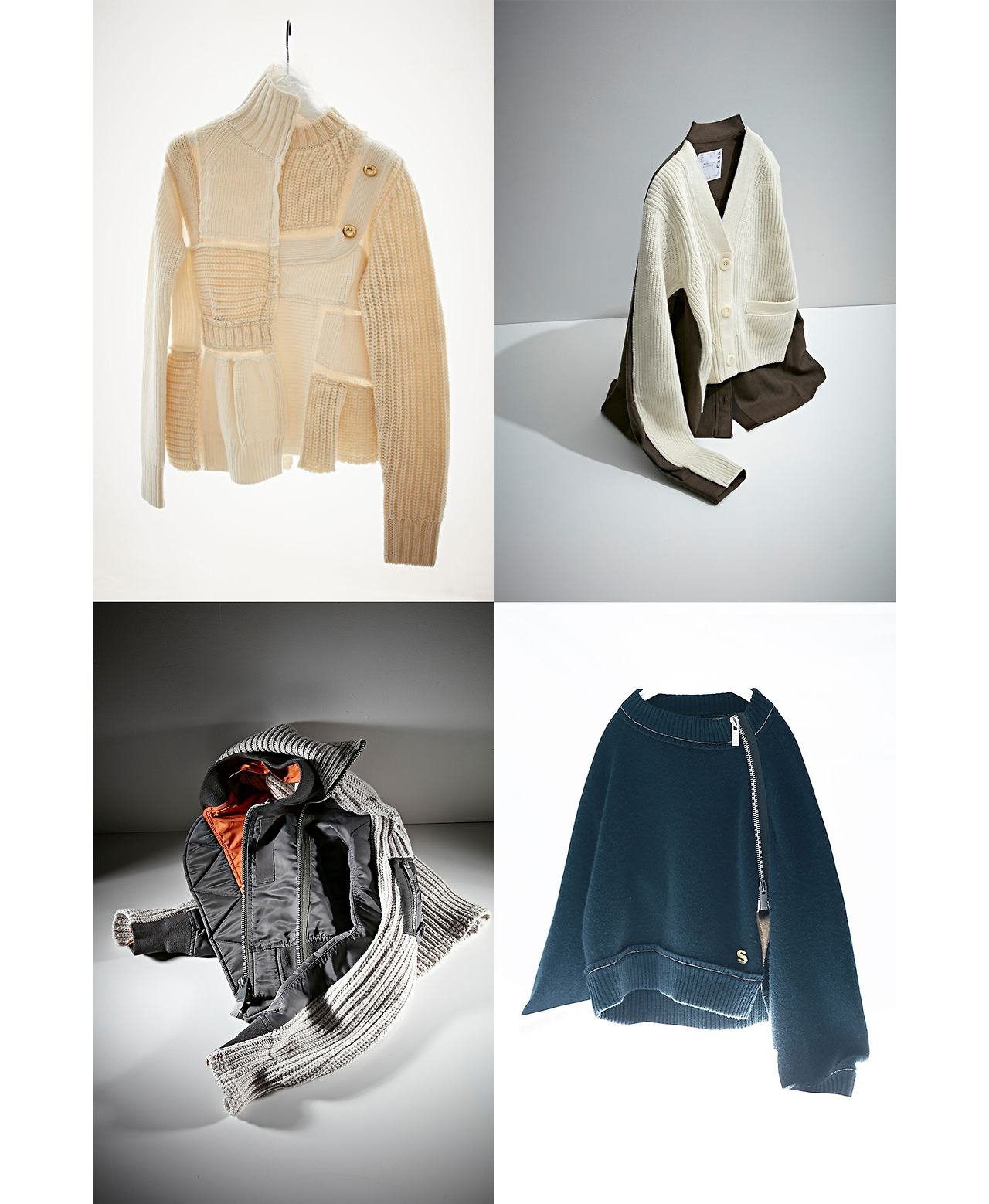 니트 5벌로 시작한 브랜드답게 니트는 sacai를 대표하는 소재라고 할 수 있다. sacai 니트는 최고급 소재를 이용해 만들어지며 봉제와 품질관리도 엄격하게 이루어지고 있다. 디자인 역시 평범한 니트웨어와는 다르다. 코튼과 나일론 소재와의 결합, 패치워크나 지퍼로 디테일을 살려서 여느 곳에서 찾아볼 수 없는 특별한 니트웨어를 선보인다.