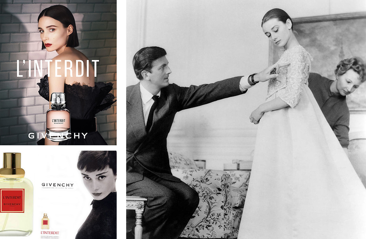헵번에게 기억에 남고 소중한 선물을 하고 싶던 지방시는 당시 가장 영향력 있는 조향사를 찾아갔고 그렇게 제작된 향이 바로 L'Interdit. 헵번은 어디를 가든지 이 향수를 사용했고, 주변 사람들이 그녀에게 어떤 향수를 쓰는지 물어보아도 결코 말해주지 않았다는 스토리가 전해진다. 그렇게 1년 후 대중들에게 L'Interdit라는 이름으로 향수가 공개되었다. 이 향수는 2018년 오드리 헵번을 닮은 루니 마라(Rooney Mara)가 캠페인에 출연하며 재출시되었다.