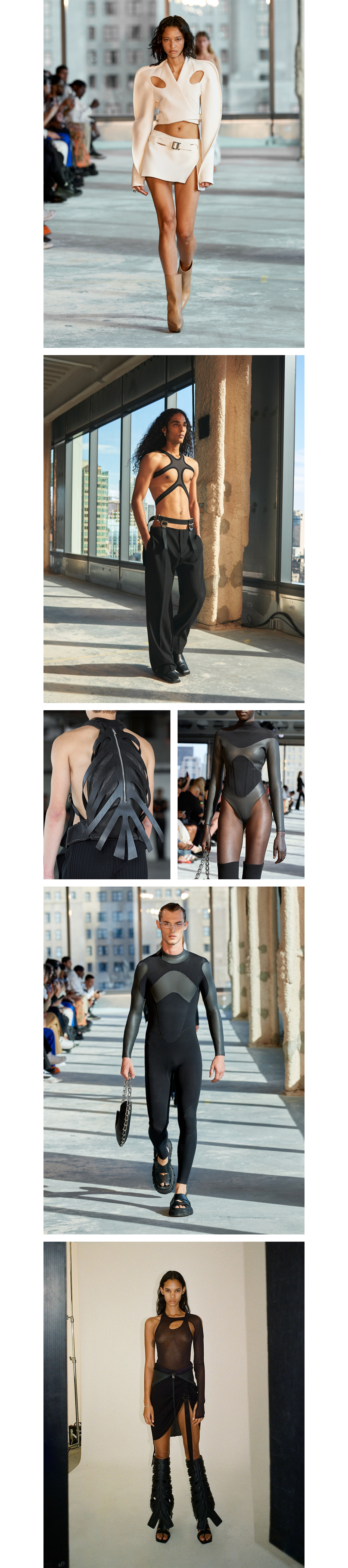 남반구에서 시작해 북반구까지, 지구를 아주 꽉 잡고 있는 Dion Lee. 아직도 동의를 못 하겠다면 핸드폰을 들고 당장 인스타그램에 접속하라! 구멍이 숭덩숭덩 뚫린 컷아웃과 가터벨트, 코르셋을 스타일리시하게 착용한 사람들의 사진이 쏟아져 내릴 것이다.