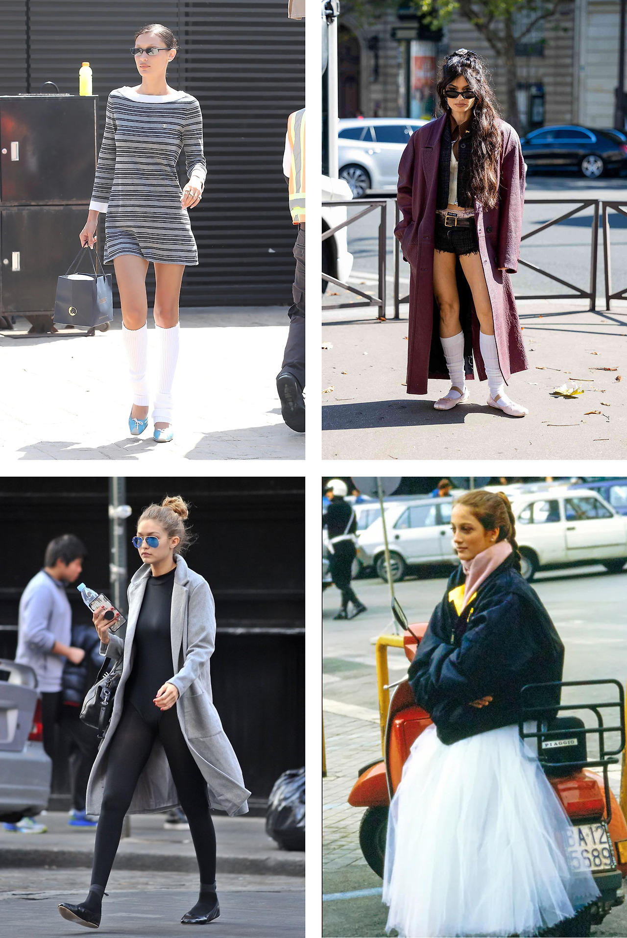 스포티한 느낌의 원피스에 화이트 레그 워머를 매칭한 벨라의 착장은 작은 아이템 하나만으로 전체적인 룩에 얼마나 색다른 느낌을 줄 수 있는지를 여실히 보여준다. 트렌디한 발레코어 스타일은 물론이며 90년대 무드까지 낼 수 있는 절호의 합체!