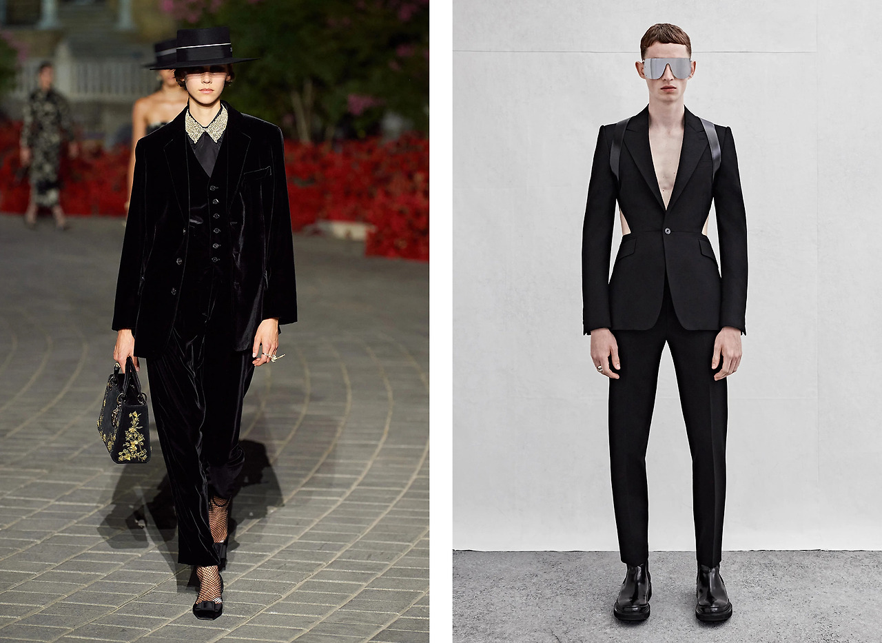 팬데믹과 자연재해 등 최근 다사다난했던 현재를 전격 반영한 것일까. 최근 여러 브랜드들의 런웨이에선 올 블랙의 룩을 자주 발견할 수 있다. 우크라이나 시인의 시와 함께 반전의 메시지를 던진 Balenciaga의 2022 FW를 시작으로 , 온몸과 얼굴을 블랙으로 덮은 Maxmara와 Coperni, Y/Project의 룩들도 예측할 수 없는 불안으로부터 자신을 보호하려 애쓰는 인간의 본능을 반영한 듯 보인다. 또한 위태로운 사회 분위기 속 기성세대의 체제에 저항을 꾀하려 하는 아나키즘적 색채가 짙게 드러나는 블랙 룩도 Dior, Alexander McQueen의 런웨이에서 목격되었다. 이처럼 죽음과 애도, 혁명과 저항, 불안과 공포까지 여러 브랜드가 블랙을 활용해 세상에 자신들의 메시지를 전달하려 시도했다.