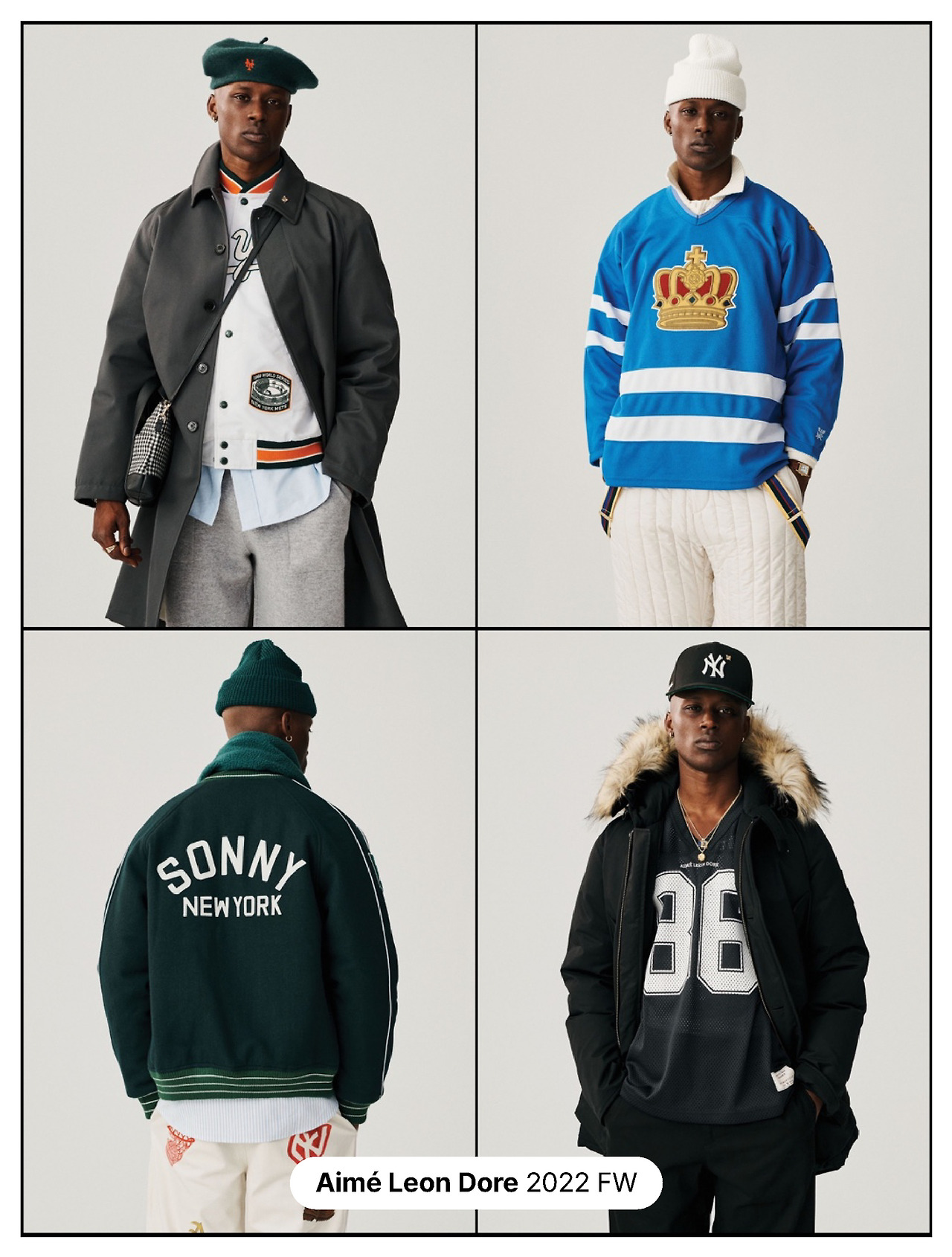 요즘 트렌드에 으름장을 놓듯 육중한 존재감을 뽐내는 브랜드, '에임레온도르(Aime Leon Dore)'. 창립자 테디 산티스(Teddy Santis)는 90년대 유년기 시절 영향을 받은 ‘그래피티’, ‘브레이크댄스’, ‘디제잉’, ‘농구’, ‘힙합’ 문화를 옷으로 풀어낸다. 특히 농구 팬이라면 누구나 아는 ‘래리 존슨’ 같은 이들이 캠페인 요소로 자주 등장할 정도다.