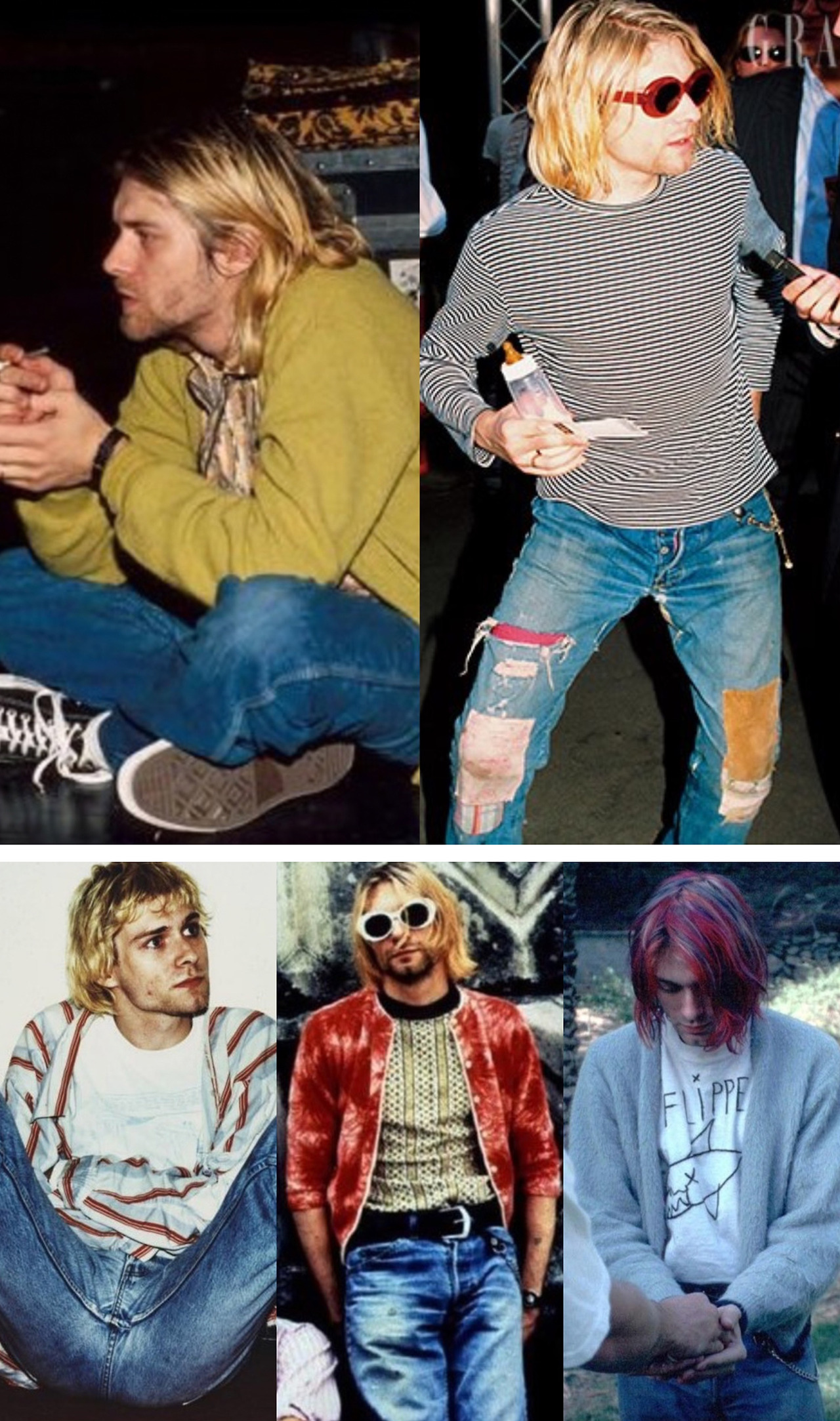 음악 재능만큼이나 다채로운 패션을 선보인 커트 코베인. 반항기 가득한 그런지 룩은 대표격이다. 디스트로이드 디테일이 풍부한 아이템들을 매치하는 것이 포인트다. 가끔은 더 나아가서 세련된 틴트 선글라스와 볼드한 모양의 신발을 매치하여 익숙함과 어색함 사이의 모호한 매력을 즐겨보자. 보다 그런지한 옷들에, 본인 취향의 아이템들을 한 겹씩 얹어보는 재미를 누려 볼 수 있다.