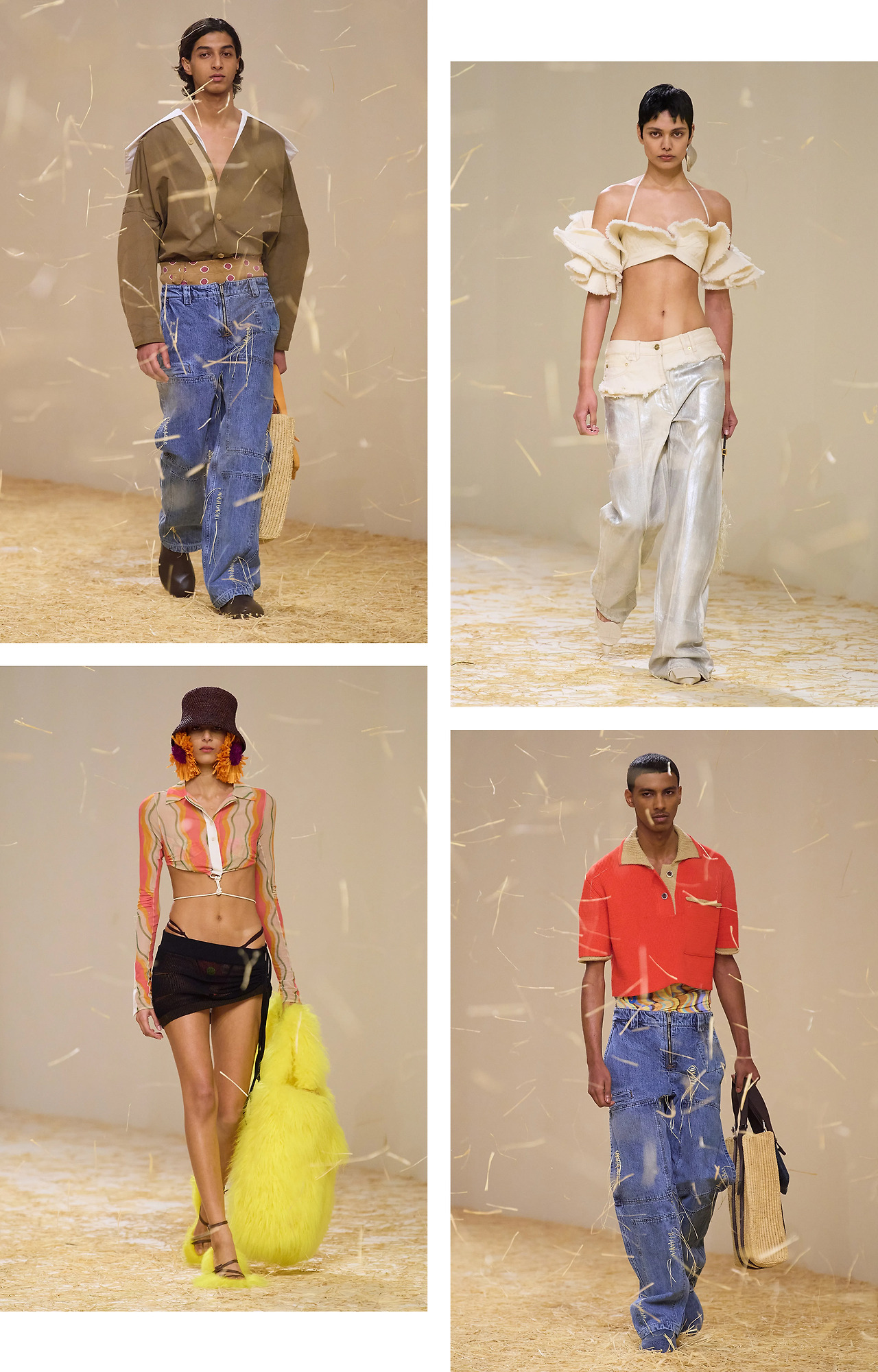 자연의 아름다움에서 영감을 받아 서정적인 분위기를 표현하는 브랜드 JACQUEMUS가 선보인 로우라이즈는 역시나 로맨틱함이 묻어져 있다. 로우라이즈를 입으려면 깔끔함과는 거리를 두어야 한다고 말하듯 디테일을 한가득 가미했다. 크림 컬러의 데님 진에는 은은한 펄의 실버 소재를 덧입혀 스틸레토 힐과 함께 매치했고, 라피아 스티치로 위트를 살린 블루 데님과는 캐주얼한 탑으로 로우 라이즈를 한층 경쾌하게 연출했다. 엄밀히 말하자면 힙합과 스케이트 문화에서 대중화된 새기 팬츠(Saggy Pants)라고 할 수 있겠지만, 로우라이즈 스타일링에 소소한 팁이 되어 줄 것이다.