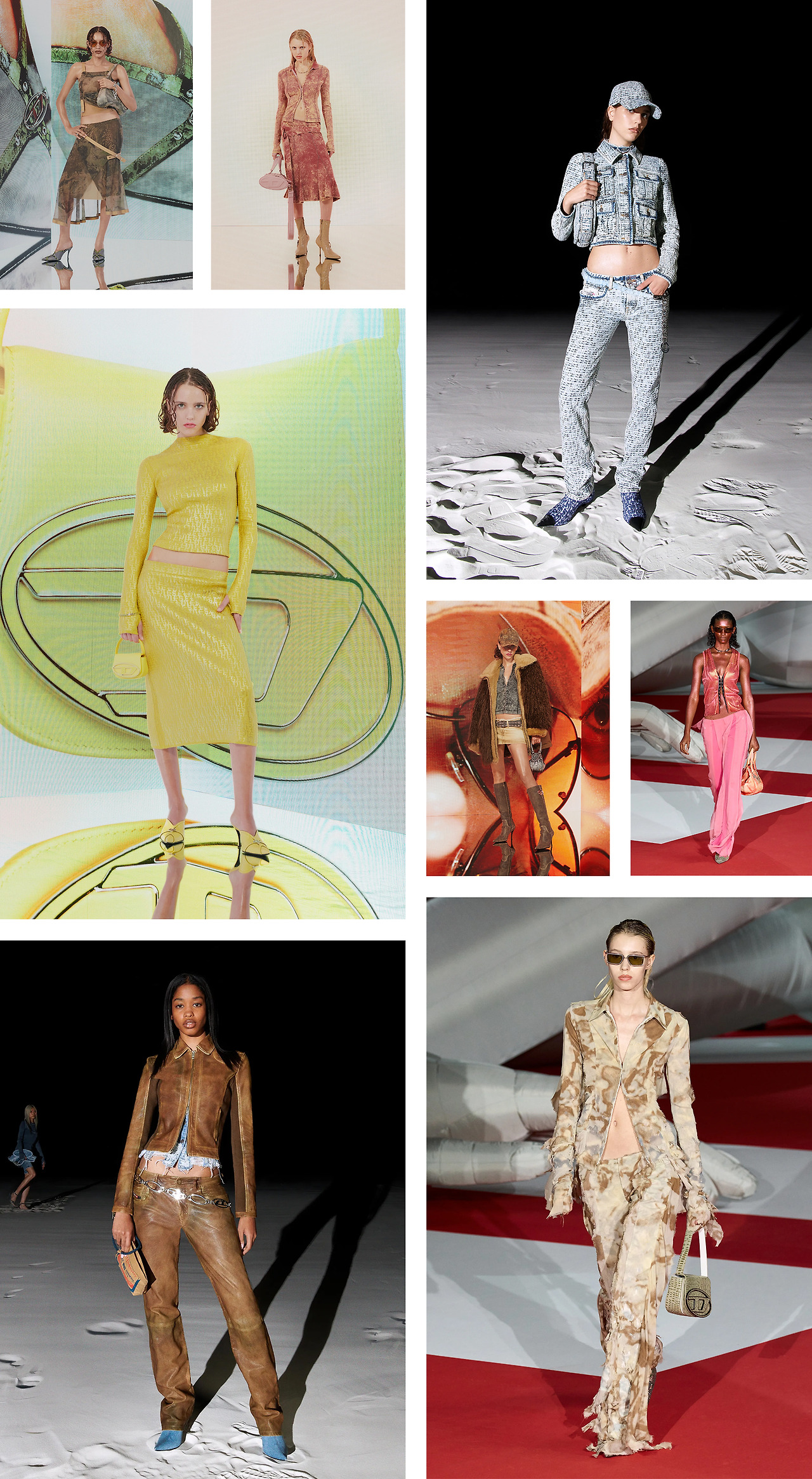패리스 힐튼(Paris Hilton), 브리트니 스피어스(Britney Spears) 등 2000년대 초반 미국의 패션 아이콘에서만 볼 수 있었던 추억의 로우라이즈를 스커트와 결합했으며, 허리라인 실루엣을 강조한 크롭탑과 함께 연출해 임팩트를 극대화했다.