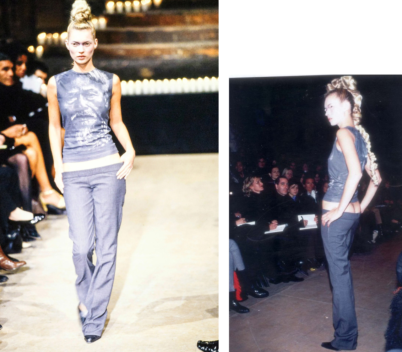 1996 FALL RTW 컬렉션에서 범스터 팬츠를 착용한 케이트 모스(Kate Moss).