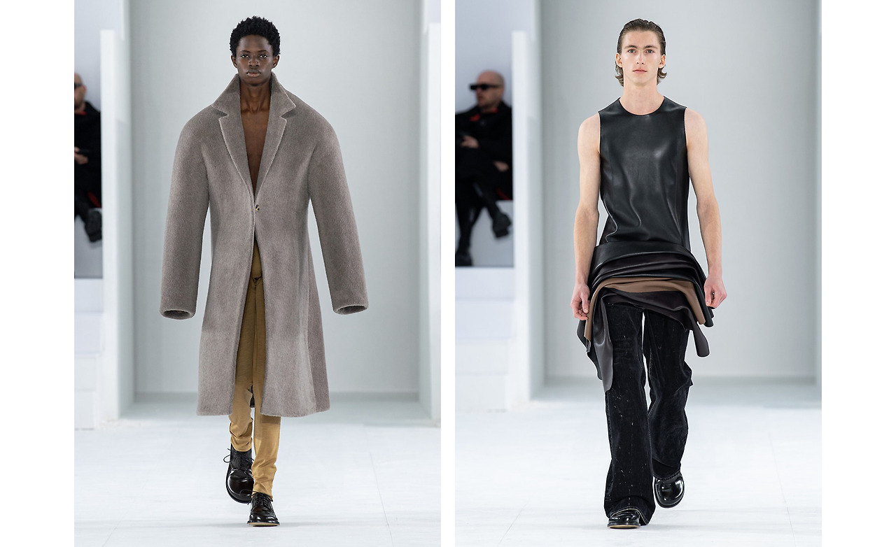 LOEWE의 공예적 특성은 이번 2023 FW 컬렉션에서도 곳곳에서 발견할 수 있었다. 망치로 내리쳐서 모양을 가다듬은 듯한 메탈 자켓부터 가지런히 갠 빨래처럼 보이는 가죽 튜닉까지. 어쨌든 앤더슨의 머리에는 공예로 가득 찼음이 틀림없다.