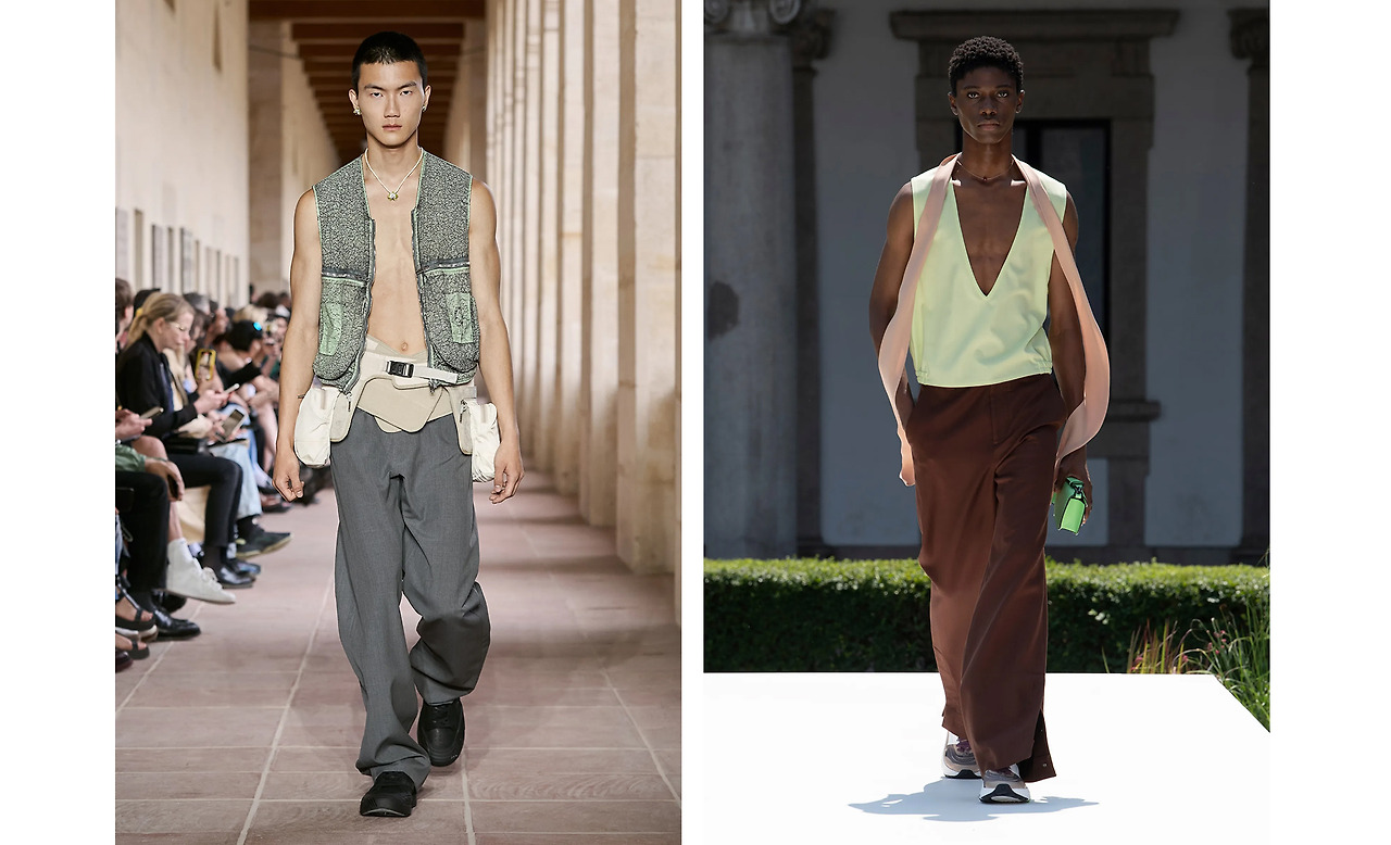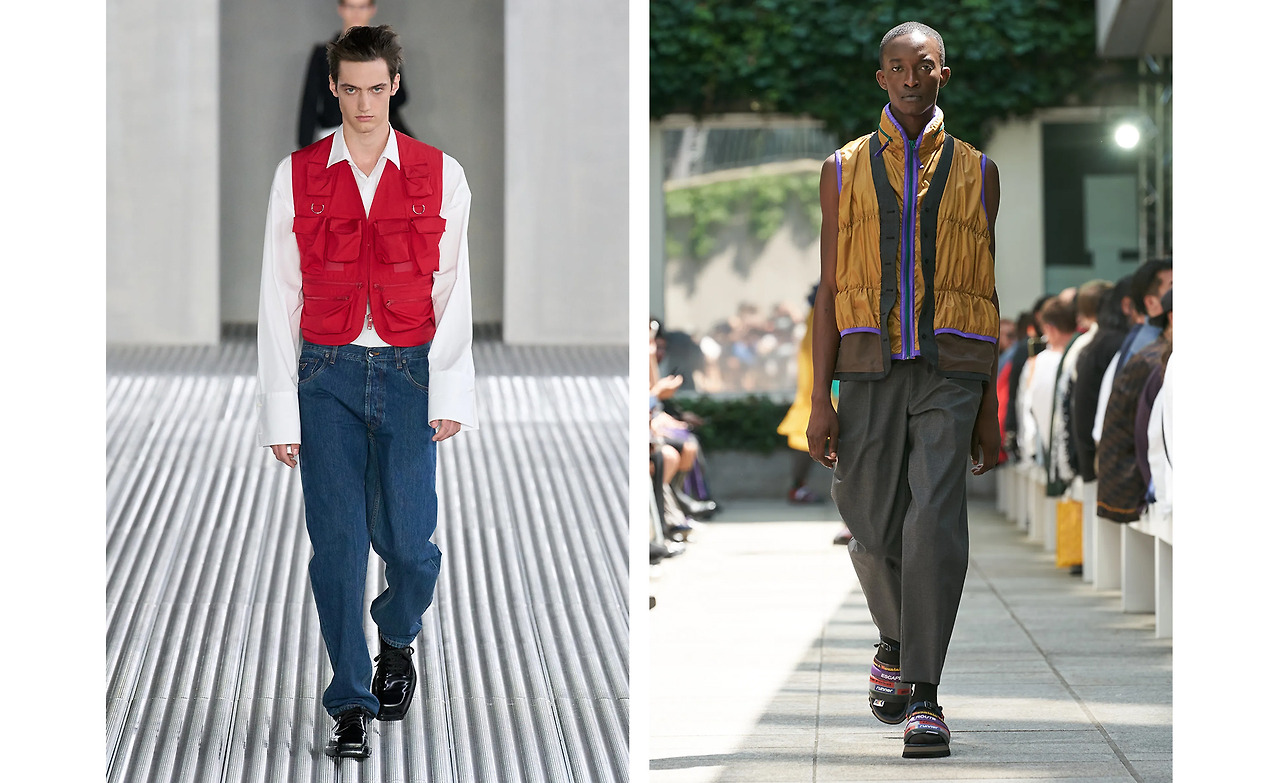 데일리 룩을 폭넓게 커버하는 아이템, 조끼의 향연이 런웨이를 뜨겁게 달궜다. 한국인들에게 어딘가 모르게 익숙한 PRADA 레드 컬러의 베스트는 낚시 조끼, 노조 조끼를 떠올리기도. 지금껏 조끼를 레이어드 아이템으로만 활용했다면 다가올 내년 여름은 조금 더 과감해져도 좋겠다. 캐주얼, 고프코어, 드레시, 스트릿 하나에 갇히지 않고 진영을 마구 넘나드는 조끼의 대활약은 이제 시작에 불과하다.