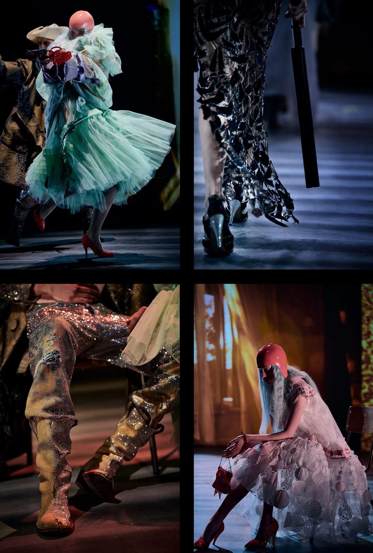 늘 아방가르드하고 전위적인 행보를 걷는 Maison Margiela의 오트 쿠튀르 컬렉션은 판타지 그 자체다. 아티즈널 컬렉션이라고 부르는 존 갈리아노가 써 내려가는 한편의 영화 같은 컬렉션. 여기에 극적인 무대 연출이 더해져 보는 재미를 선사한다.