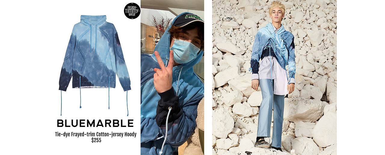 하지만 우리가 굳이 걱정하지 않아도 BLUEMARBLE의 미래는 이미 화창한 것 같다. 슈퍼스타인 저스틴 비버(Justin Bieber)와 티모시 살라메(Timothée Chalamet)가 브랜드의 찐팬임을 진작에 인정했으니 말이다. 저스틴은 라인 스톤으로 장식된 데님을, 티모시는 푸른빛의 후디를 착용하여 팬들을 비롯한 패션 피플들의 관심을 받았다.