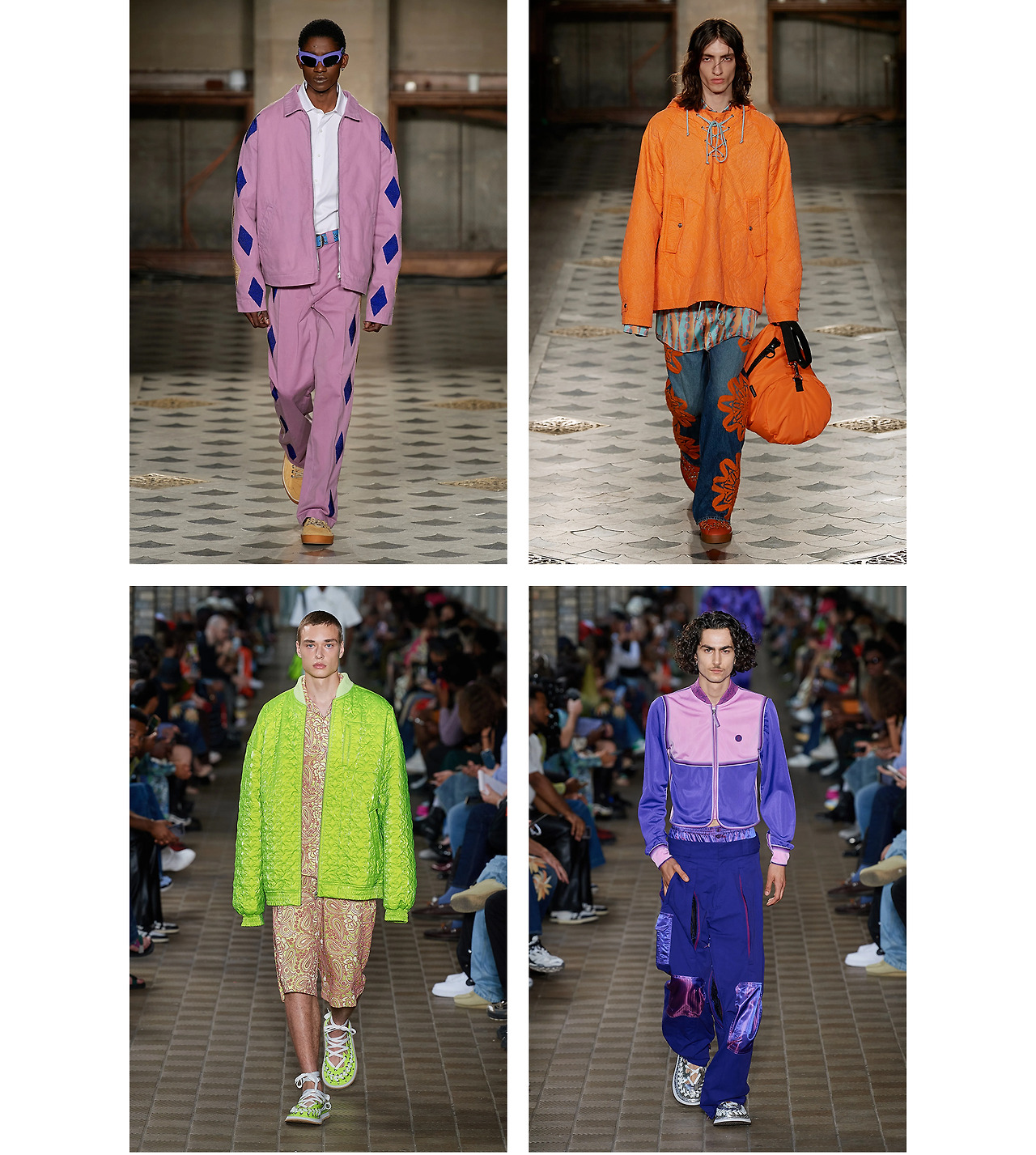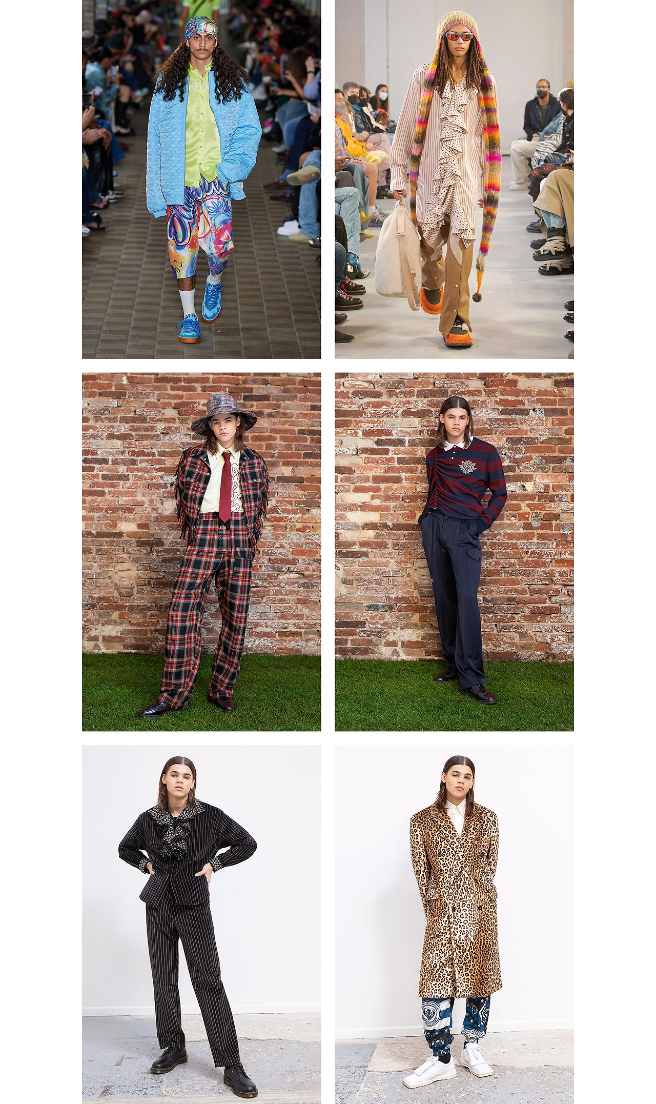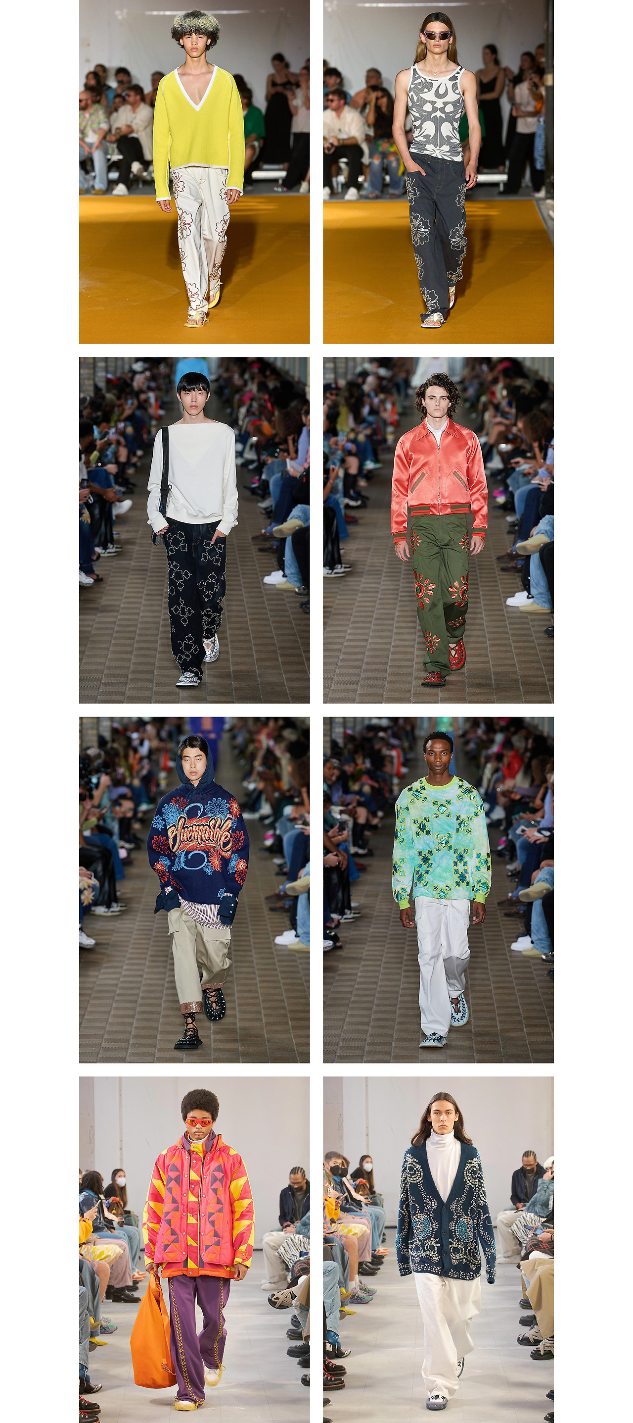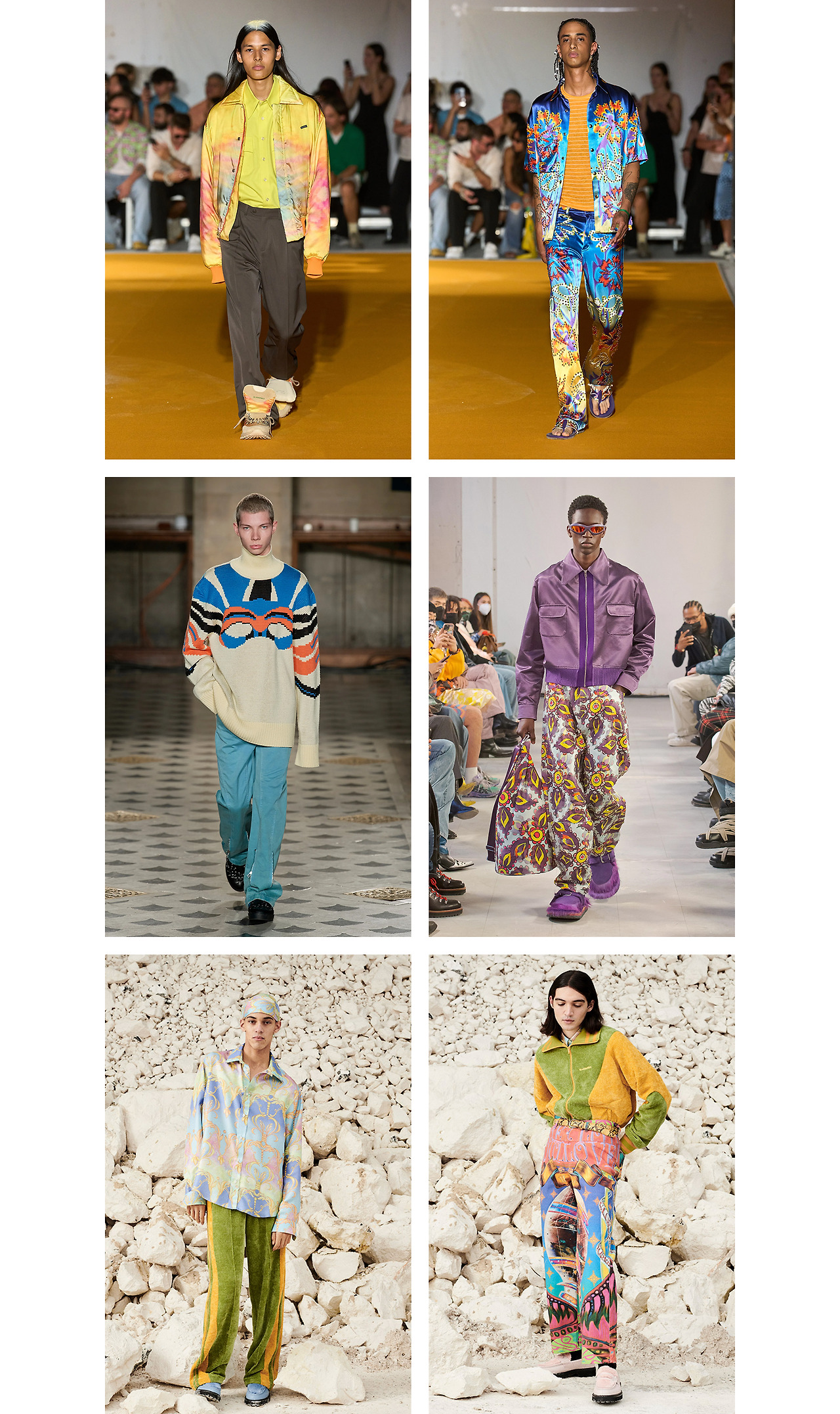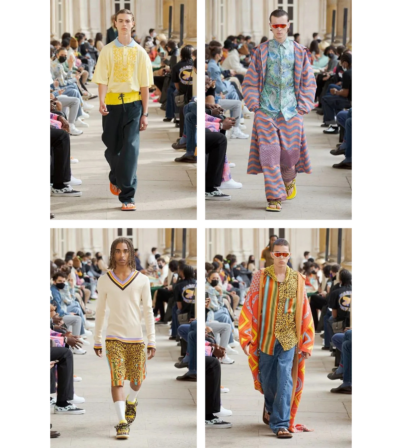 특히 서핑 컬처의 영향을 많이 받은 2022 SS 컬렉션엔 비치웨어를 활용한 의상들이 곳곳에 등장한다. 격식 있는 트라우저와 서핑 팬츠를 결합하거나, 하와이안 무드를 느낄 수 있는 프린트 셔츠들을 이너로 매칭한 신선한 착장을 선보였다.
