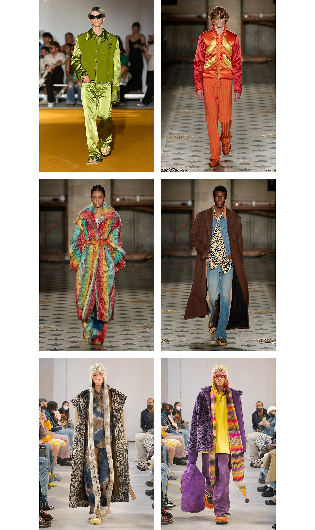 BLUEMARBLE하면 가장 먼저 떠오르는 건 바로 색감이다. 키 컬러 위주로 진행되는 안정감 있는 런웨이 대신, 파격적이고 실험적인 컬러 팔레트들을 적재적소에 배치하여 고유한 아우라를 만들어내는 것이 브랜드가 지닌 마력의 원천.