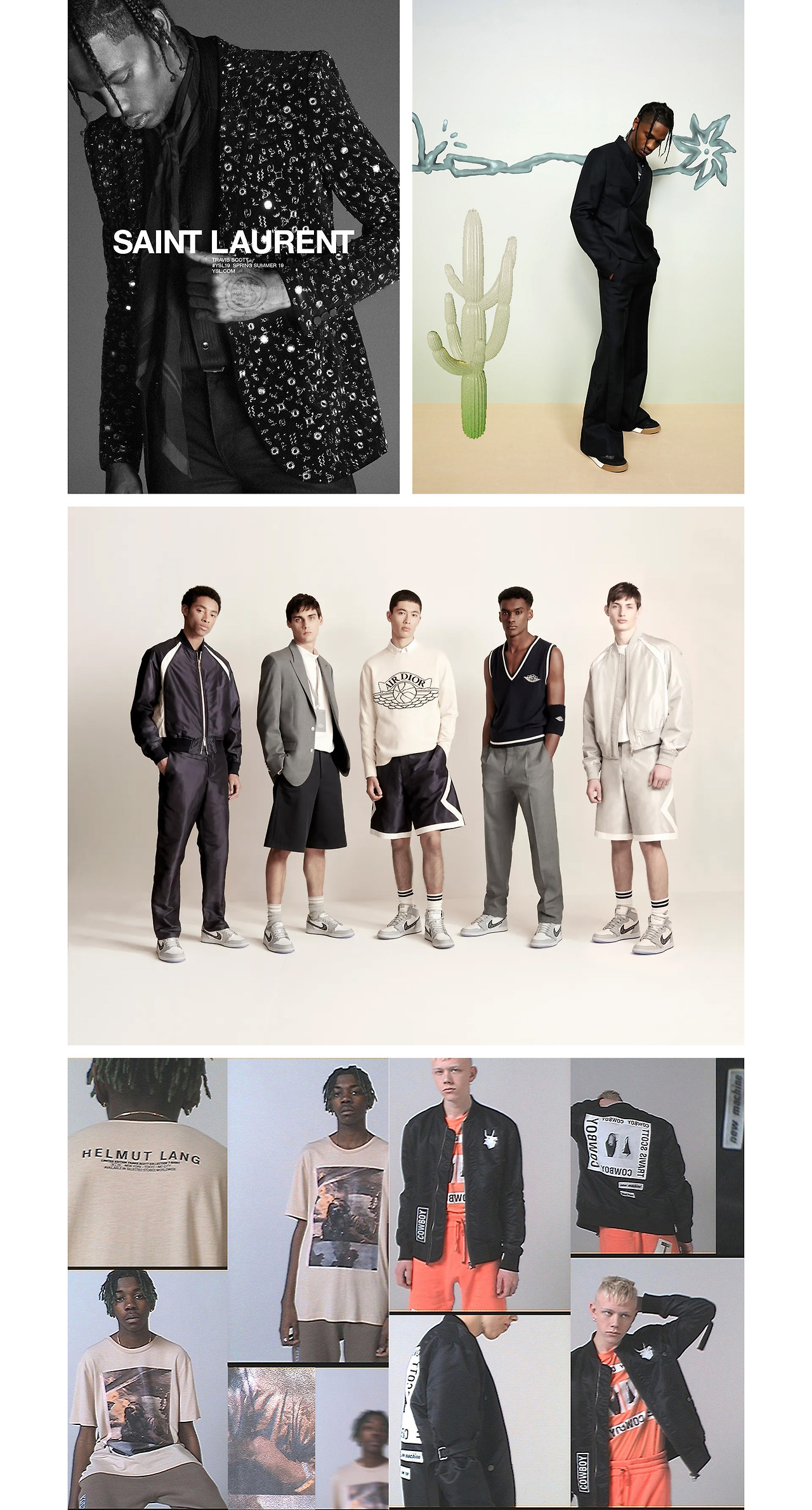 뿐만 아니다. 그는 SAINT LAURENT과 HELMUT LANG, Dior과도 콜라보를 진행한 적이 있다. SAINT LAURENT은 2019년 SS의 캠페인에 트래비스를 모델로 내세우고, 한정 제작된 음반까지 함께 출시해 남다른 주목을 받았다. 바로 전 디렉터였던 에디(Hedi Slimane)가 락 음악으로부터 영감을 받았던 것처럼, 현 디렉터 안토니(Anthony Vaccarello) 역시 힙합의 뉘앙스를 토대로 한 새로운 시도를 펼치려 했던 것.