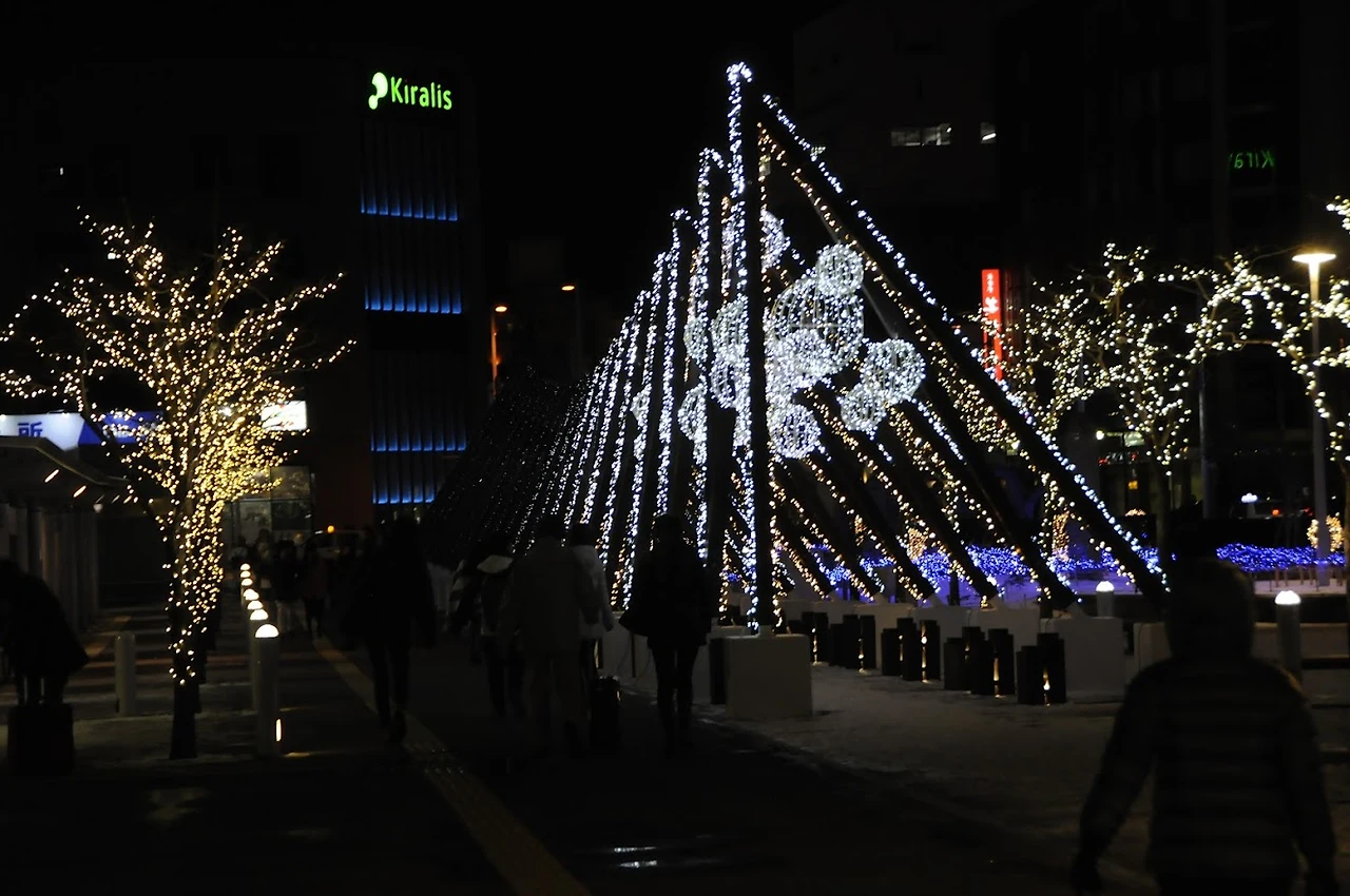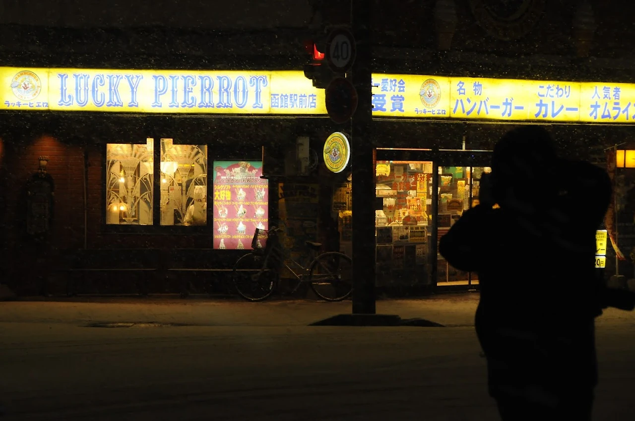 저녁 7시의 하코다테는 분주한듯 고요했다. 이 곳의 사람들은 늦은 퇴근을 서둘렀고, 어둠이 도시에 내려앉기 시작했다. 일상과 밤 속에 우리만이 풍요로운 설렘이었다. 탄성과 카메라 셔터소리로 대화를 나눴을 뿐이었다. 숙소로 걸어가는 내내 카메라에서 손을 놓지 않았고 입김도 감성을 북돋아주는 그날의 공기였다. 누군가들의 일상을 우리는 개척자처럼 거닐었다. 도착한 숙소의 비좁은 방마저도 그토록 보고 싶었던 설국의 감성이라며 행복해했다. 짐을 놓고 내려가 우리는 어딘가에서 봤던 것처럼 따뜻한 정종에 식사를 하자며 찾아 나섰다. 하지만 오후 4시경이면 해가 저물고 금새 어두워지는 겨울의 홋카이도는 우리에게 쉽게 길을 내어주지 않았다. 가난한 여행객인 우리에게 이자카야의 물가는 턱없이 높았고 평소처럼 눈이 오는 하코다테에서 우리는 방황했다. 하루를 마감한 상가들 사이로 내려앉는 눈들의 무게가 무거워질때쯤, 외로이 따뜻하게 켜져있는 한 가게로 향했다. 우연하게도 지역에서 유명했던 프랜차이즈 식당이었고, 그렇게 우리는 첫 북해도의 식사는 스시, 우동, 라멘이 아닌 버거였다.