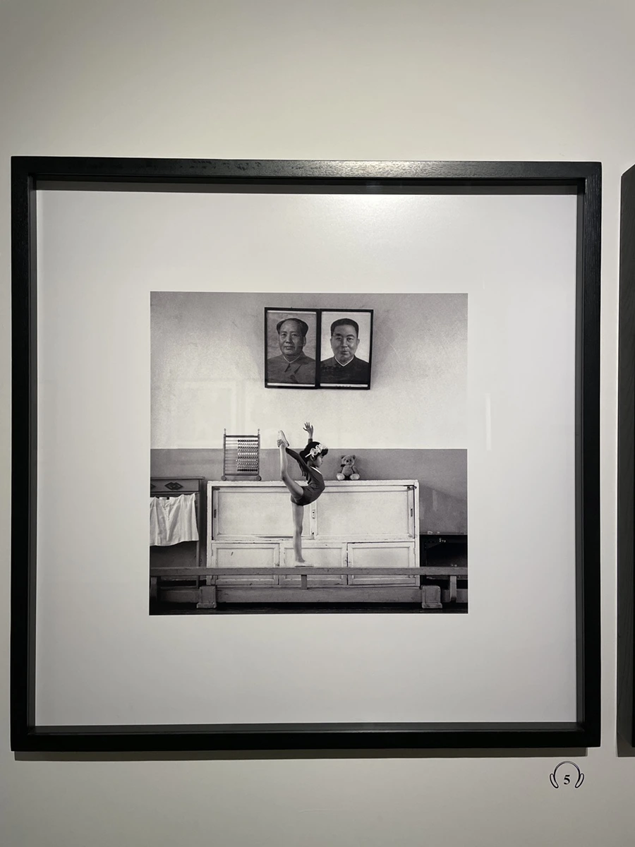 마오쩌둥 사진 아래에서 춤을 추는 어린 아이