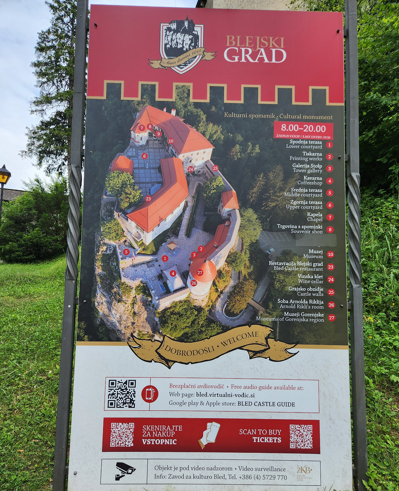 슬로베니아에서 가장 오래된 성이다. 성 입구부터 견고함이 물씬 묻어난다. 타워와 성벽 등 중세시대 요새의 전형을 완벽하게 갖추고 있다. 블레드 전체가 조망되어 그야말로 감탄사가 절로 나올 정도다. 마치 시간이 멈춘 듯하다. 누가 보아도 예술이요 어떻게 봐도 절경이다. 이 성은 국내 한 방송사 드라마의 배경지로 소개되면서 유명세를 톡톡히 치르고 있다고 한다. 바로 K-문화의 힘이리라.