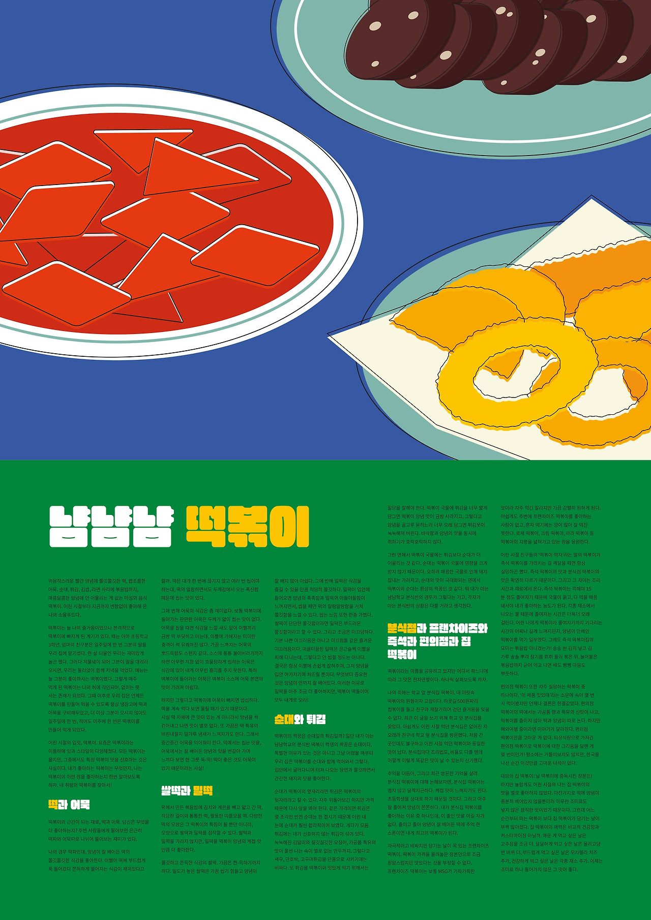 먹음직스러운 빨간 양념에 쫄깃쫄깃한 떡, 짭조름한 어묵. 순대, 튀김, 김밥, 라면 사리에 볶음밥까지, 매콤달콤한 양념에 안 어울리는 게 없는 마성의 음식 떡볶이. 어린 시절부터 지금까지 변함없이 좋아해 온 나의 소울푸드다.