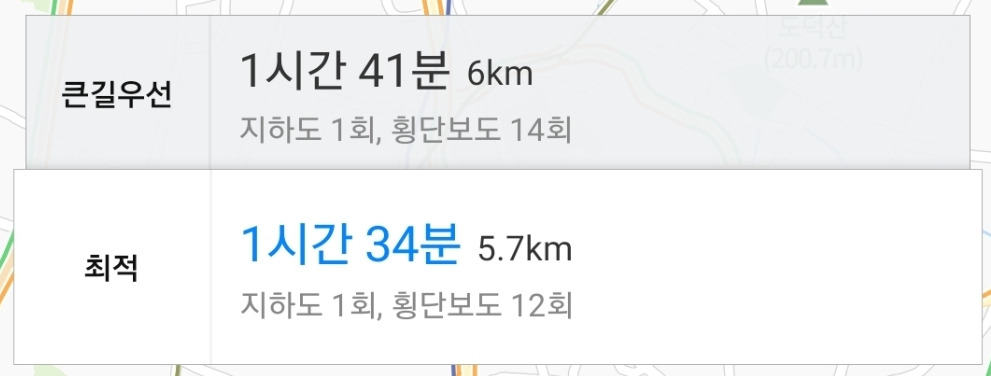 출발지 기준을 1시간 34분. 이제와서 말하지만 1시간 34분은 걸어가는 거리가 아니다.