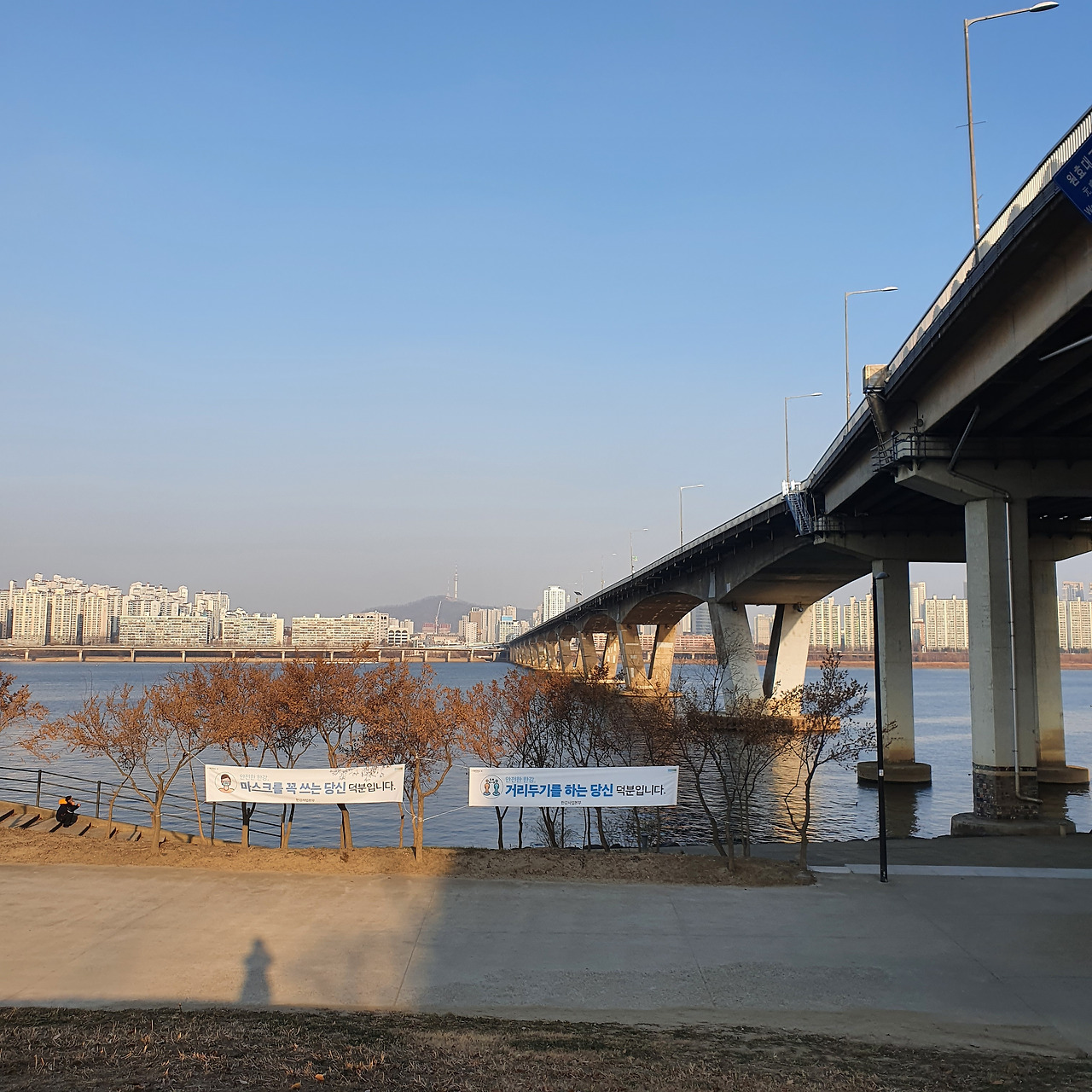 다시 억압된 자유에 다리는 아팠지만 탁 트인 한강공원은 나에게 두 번째 행복을 가져다주었다. 생각보다 나처럼 혼자 한강공원에 온 사람도 많았는데, 다들 거리 두기를 지키면서 지금 시국에 할 수 있는 나름의 행복을 누리고 있었다. 나 또한 편의점에서 따뜻한 캔커피를 하나사들고 벤치에 앉아서 노을이 지기만을 기다렸다.