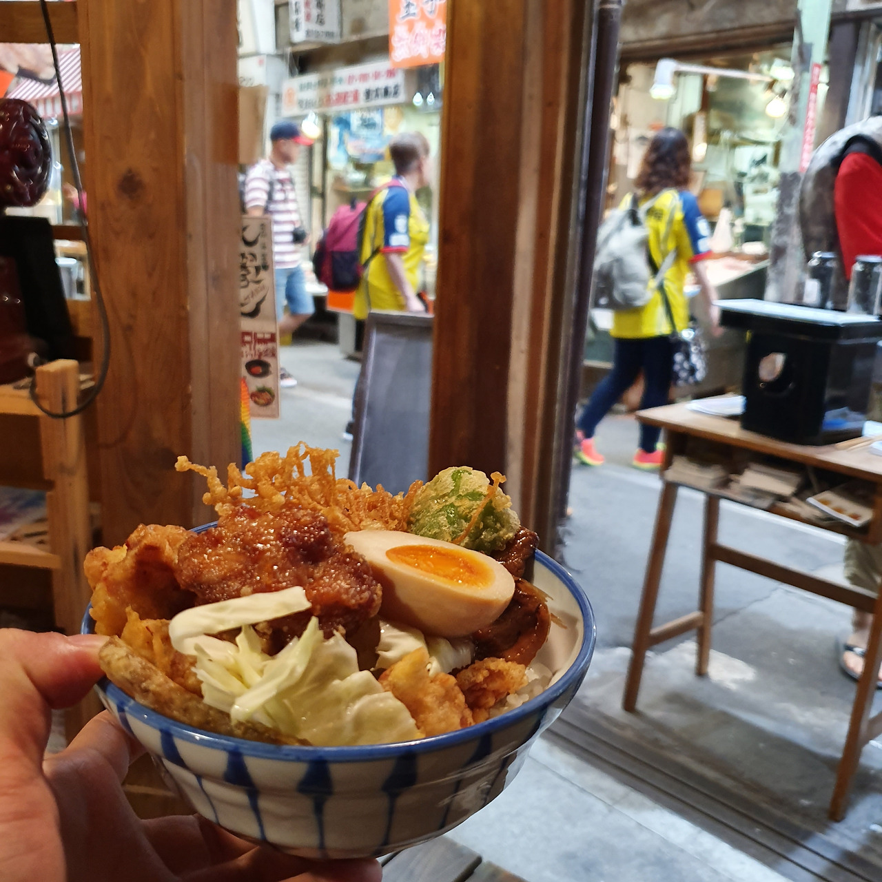온천에 다녀와서는 시장에 가서 점심을 먹었는데, 보통 덮밥과 달리 한 가게에서 밥과 그릇을 받은 뒤에, 다른 가게들을 돌아다니면서 반찬을 추가했다. 6-7개 정도의 가게를 지나고 나니 완벽한 덮밥이 만들어졌다. 재료끼리 어울릴까 의문이 들기도 했지만 정말 맛있게 먹었다.