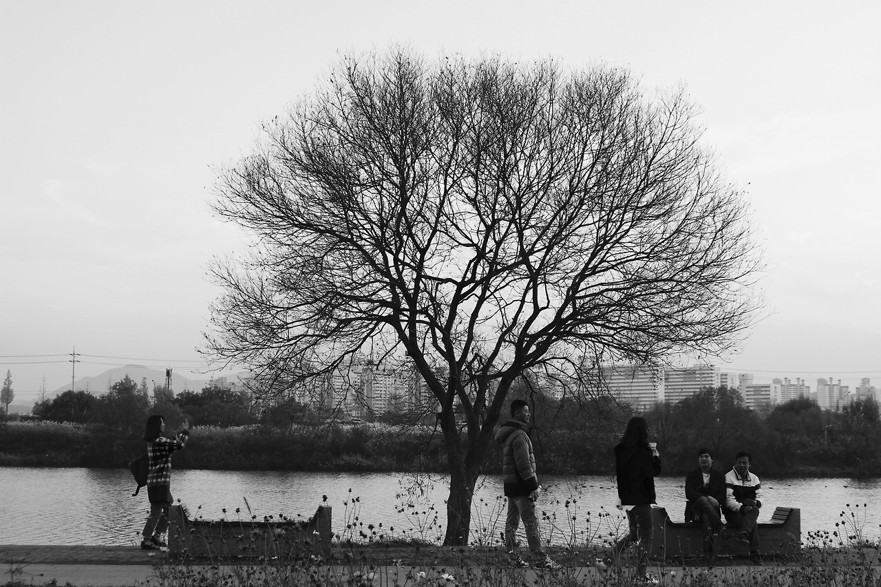 고독의 상징같은 느낌도 들긴 하지만, 벌거벗은 가지가 예쁘게도 동그란 형태를 만든 나무가 강변에 하나 더 있었다. 그래서 우리는 이 나무는 '이 아산나무'로 이름 붙여주기로 했다.