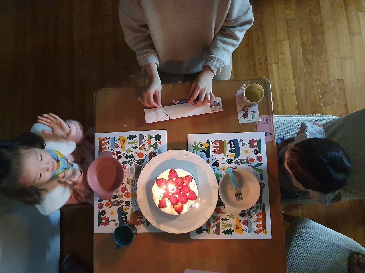 아이들 재우고 새해 인사 메시지를 지인들에게 보내고